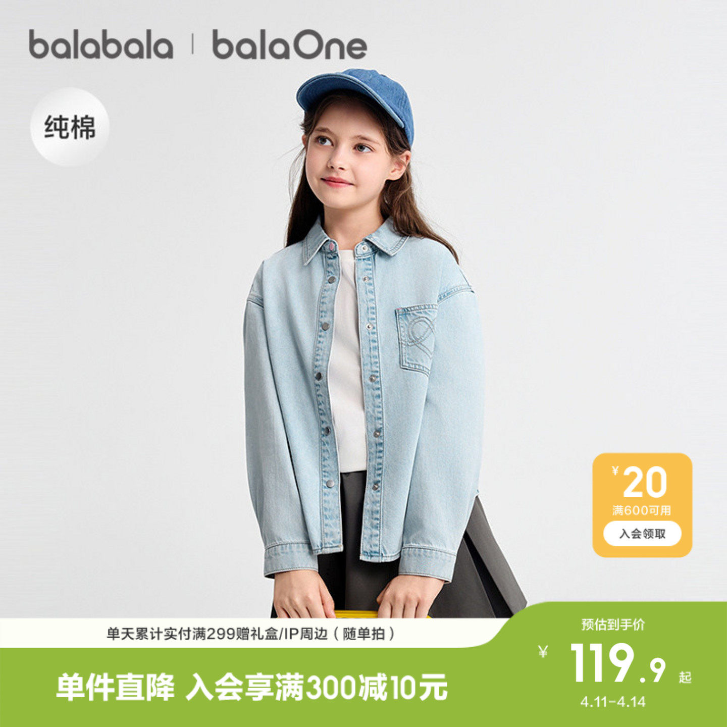 巴拉巴拉童装女童衬衫儿童长袖2026新款春装装全棉牛仔衫舒适外套