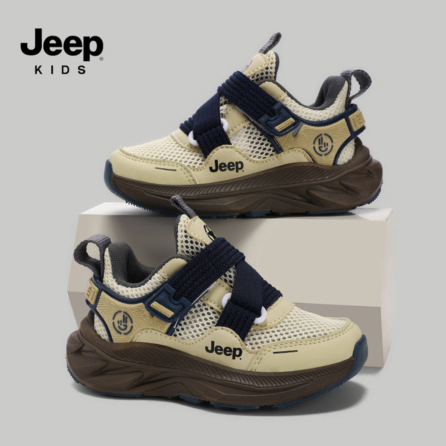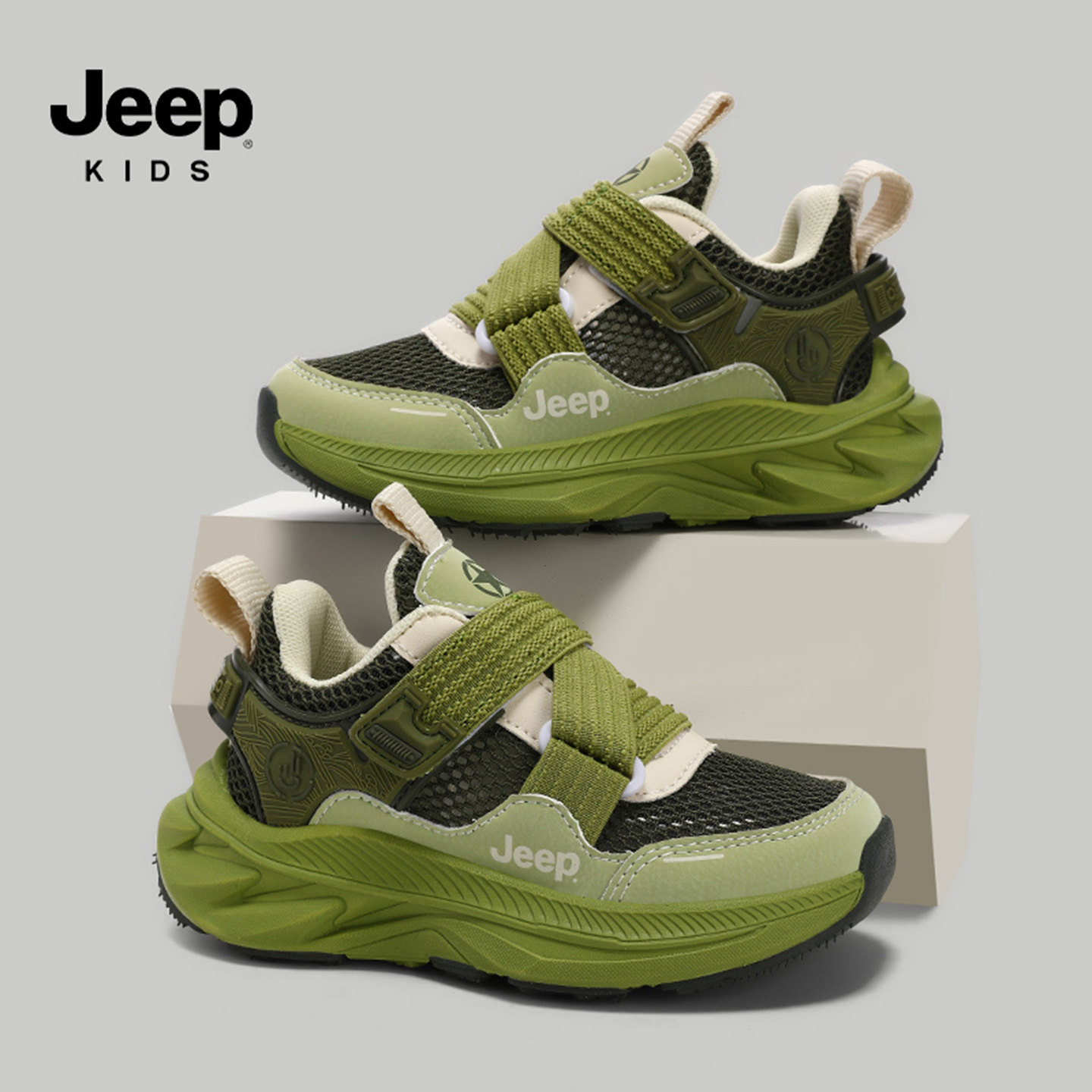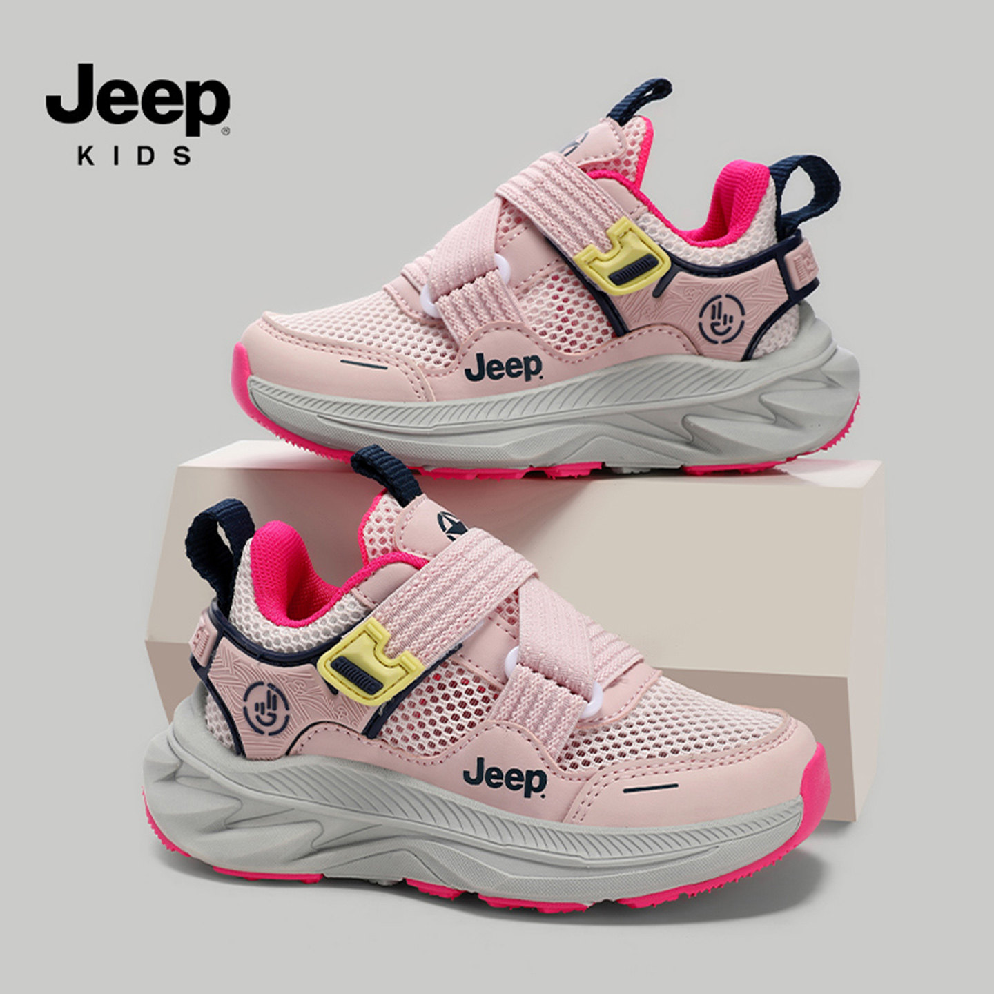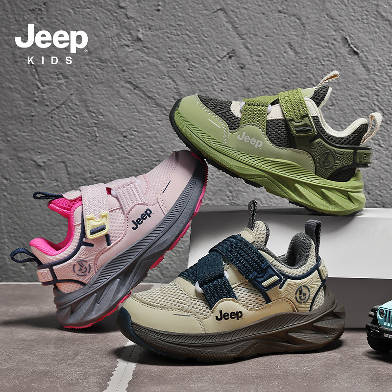 jeep儿童运动鞋子男童春夏网面透气一脚蹬跑步鞋小学生女童休闲鞋