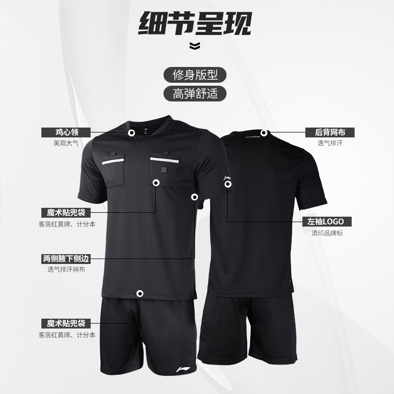 李宁足球裁判服套装备训练专业比赛裁判员服装短袖短裤裁判衣正品