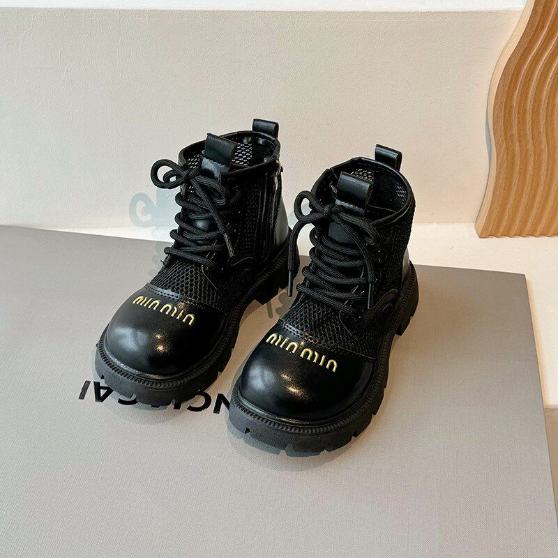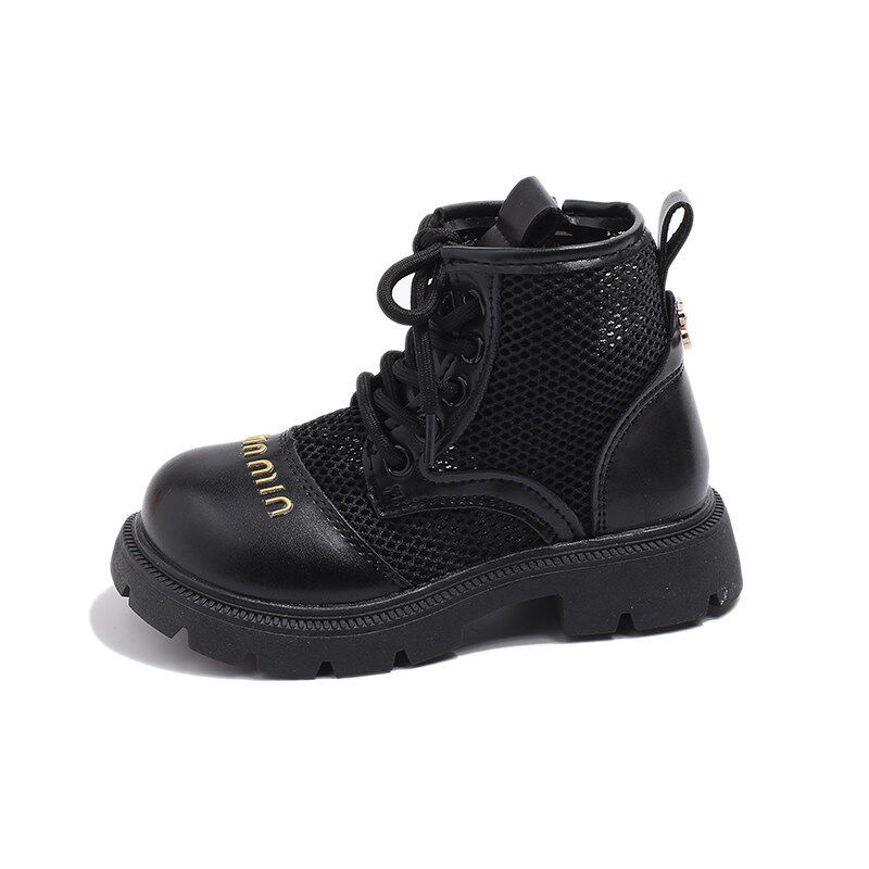 女童鞋2025新款夏季儿童马丁靴镂空透气薄款网靴黑色靴子男童短靴
