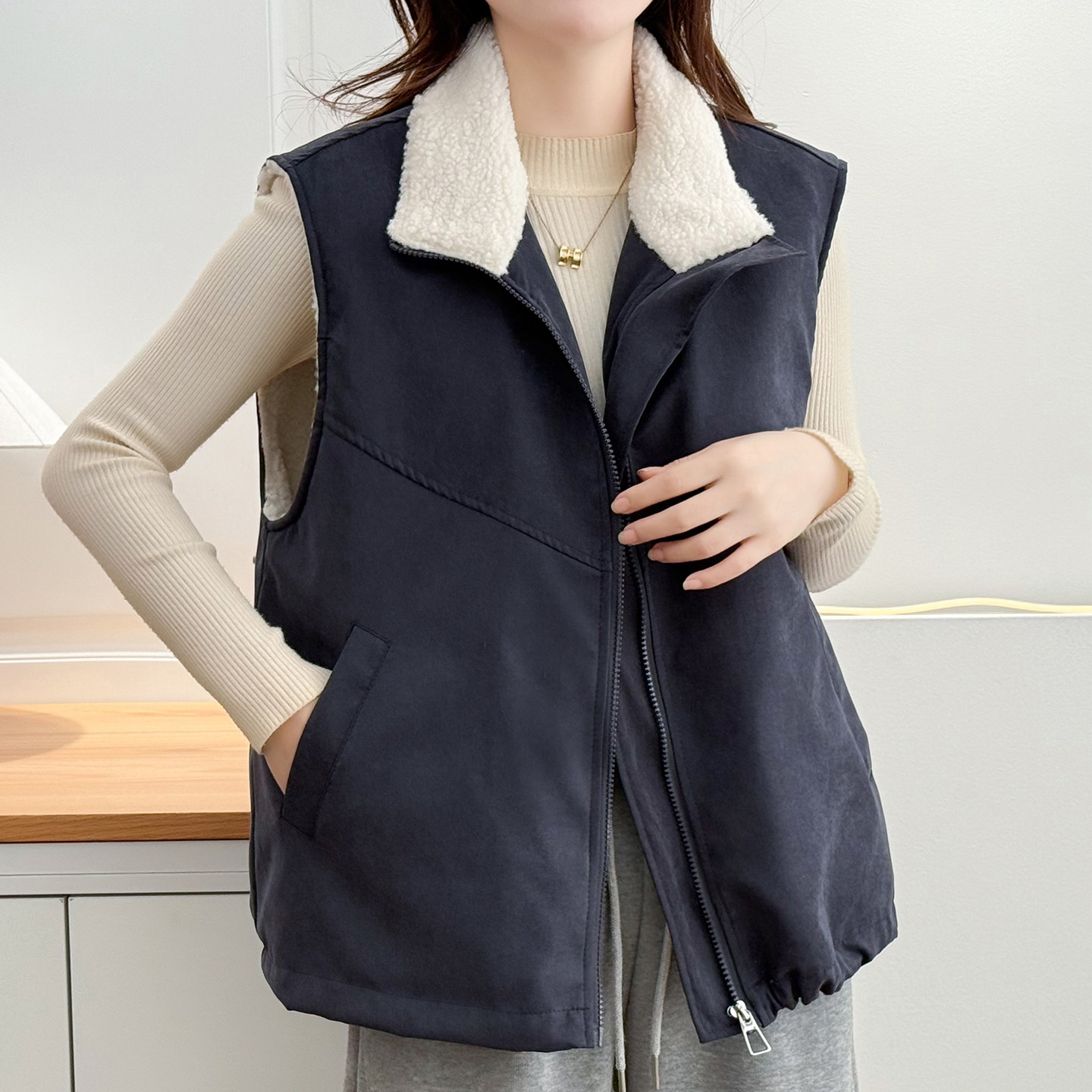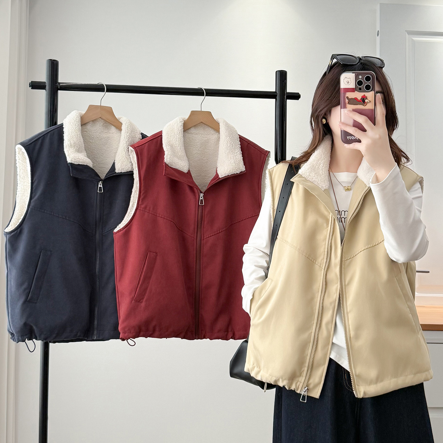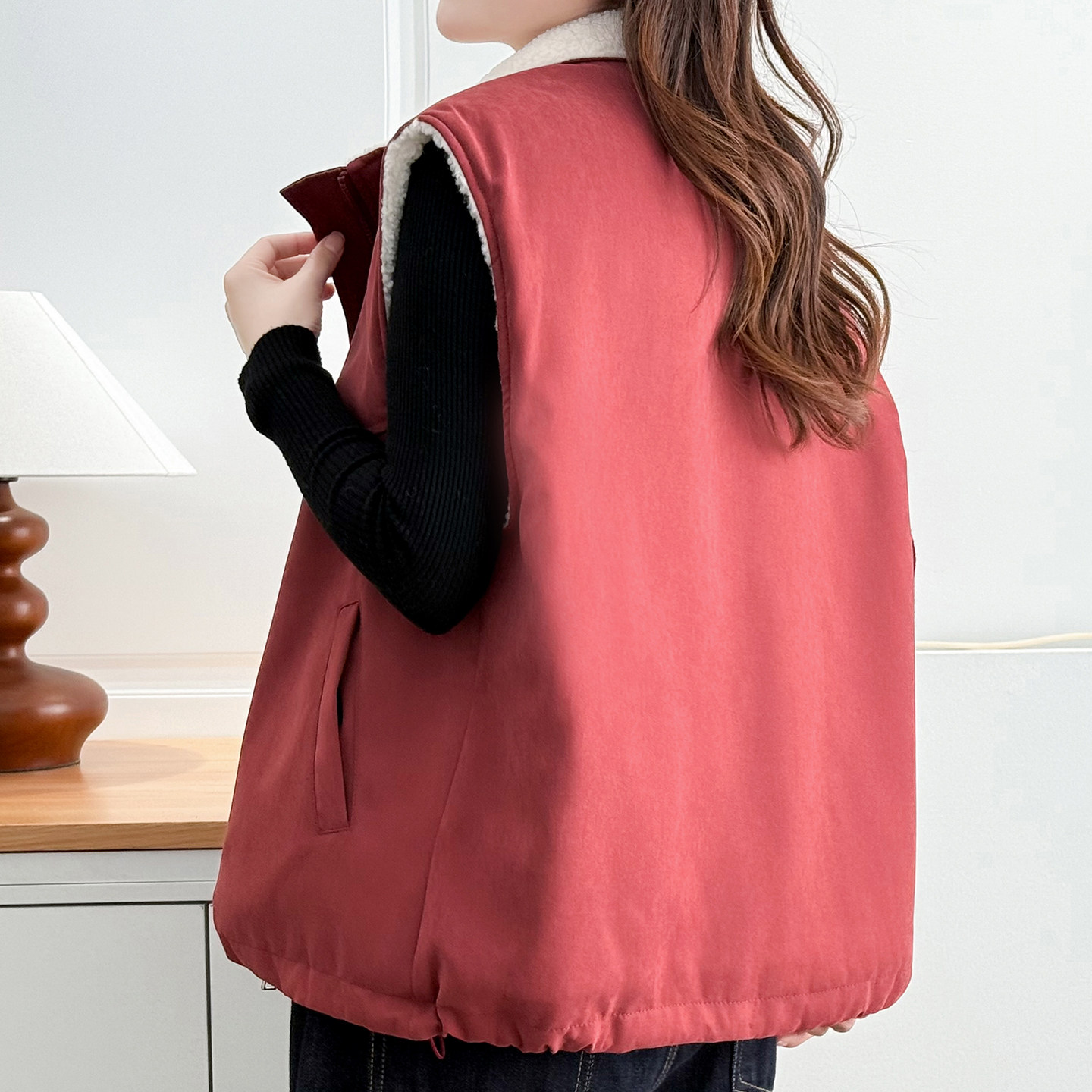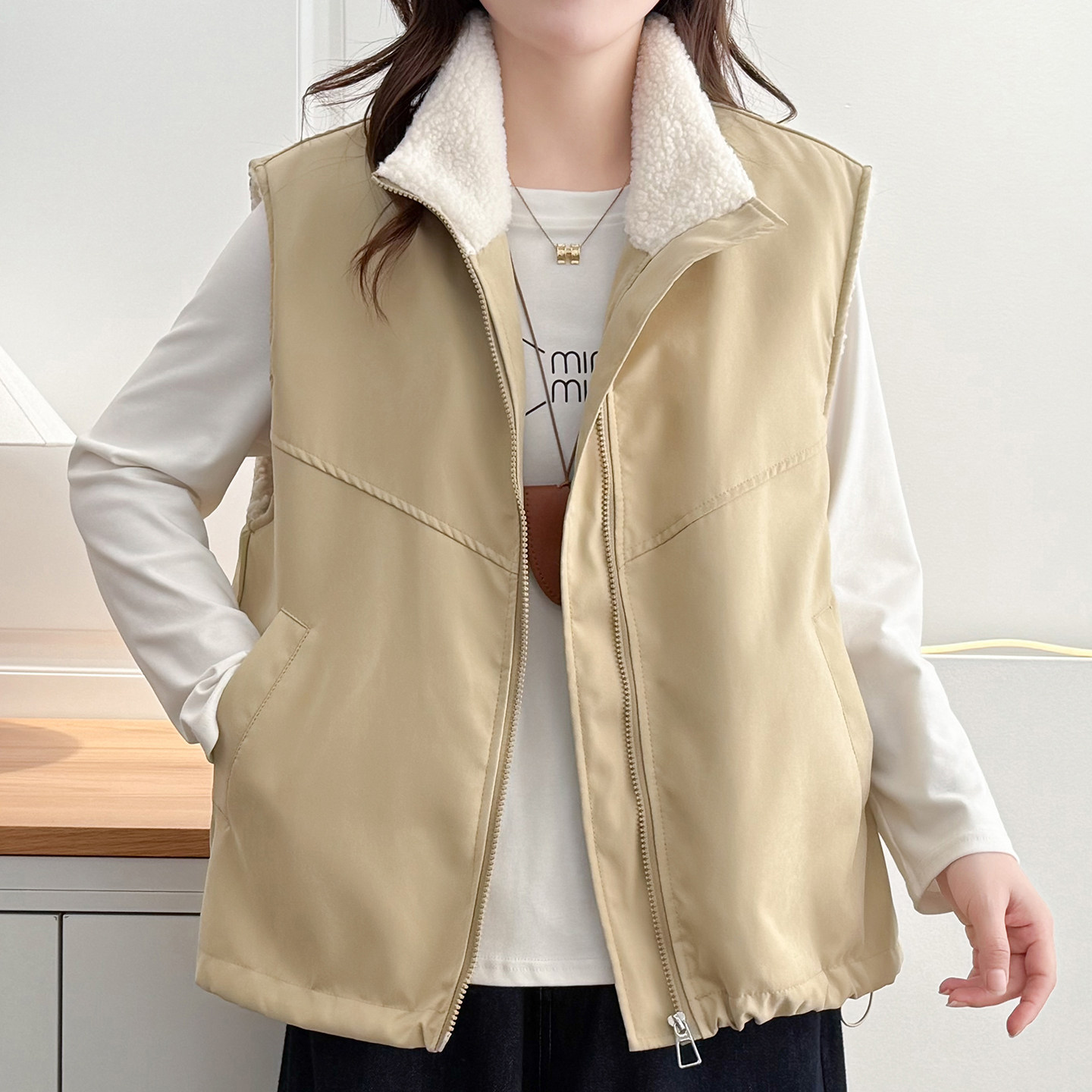 大码女装加绒加厚羊羔毛无袖外套胖mm冬季百搭遮肉显瘦保暖棉马甲