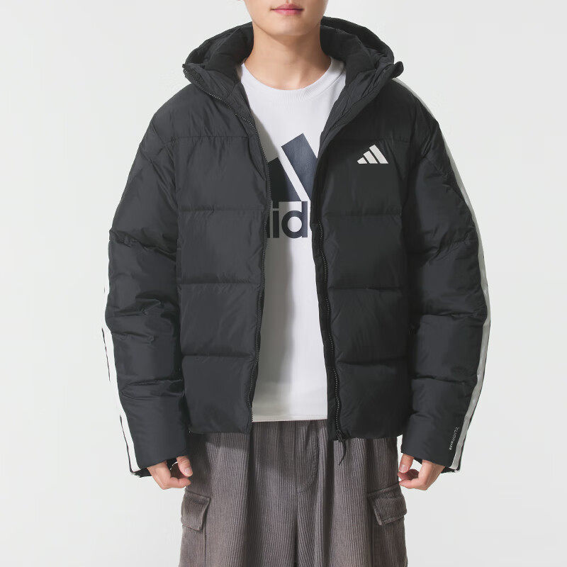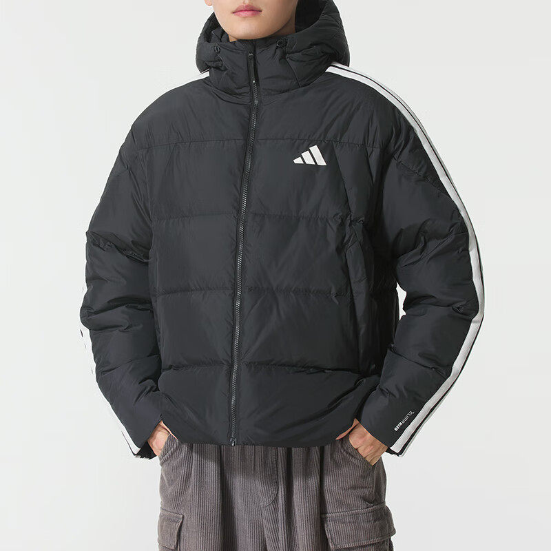 adidas 保暖条纹拉链鸭绒羽绒服 男款