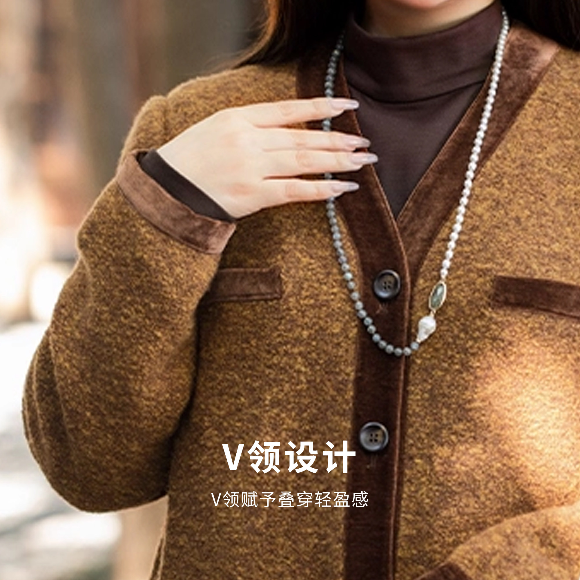 311线报网描述:V领 赋予叠穿轻盈感 ,灯芯绒拼接,树脂扣