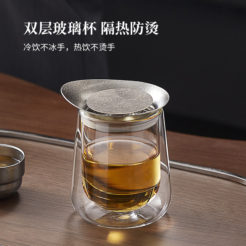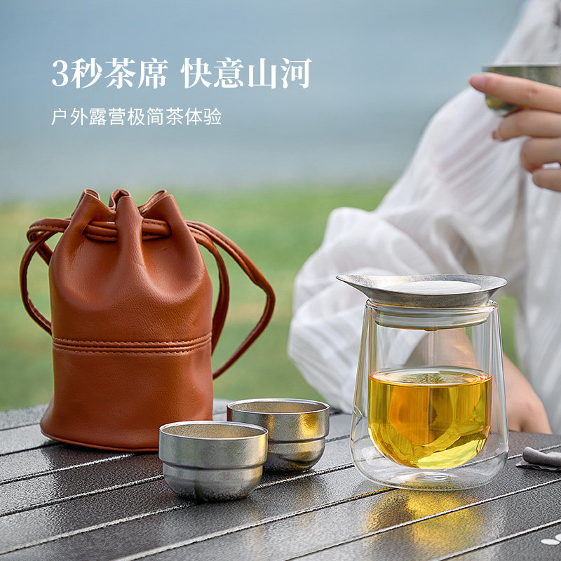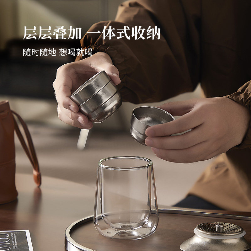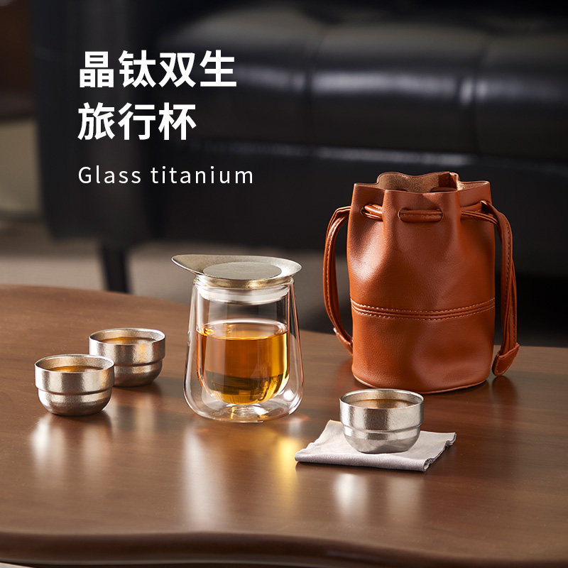 旅行茶具套装纯钛盖便携式双层防烫快客杯户外露营套装功夫一人饮