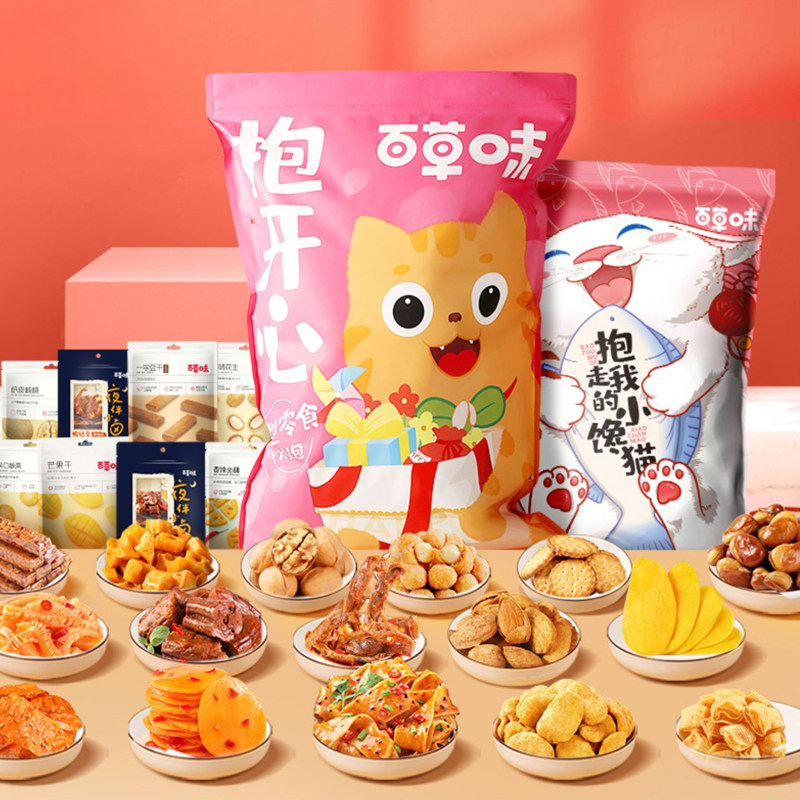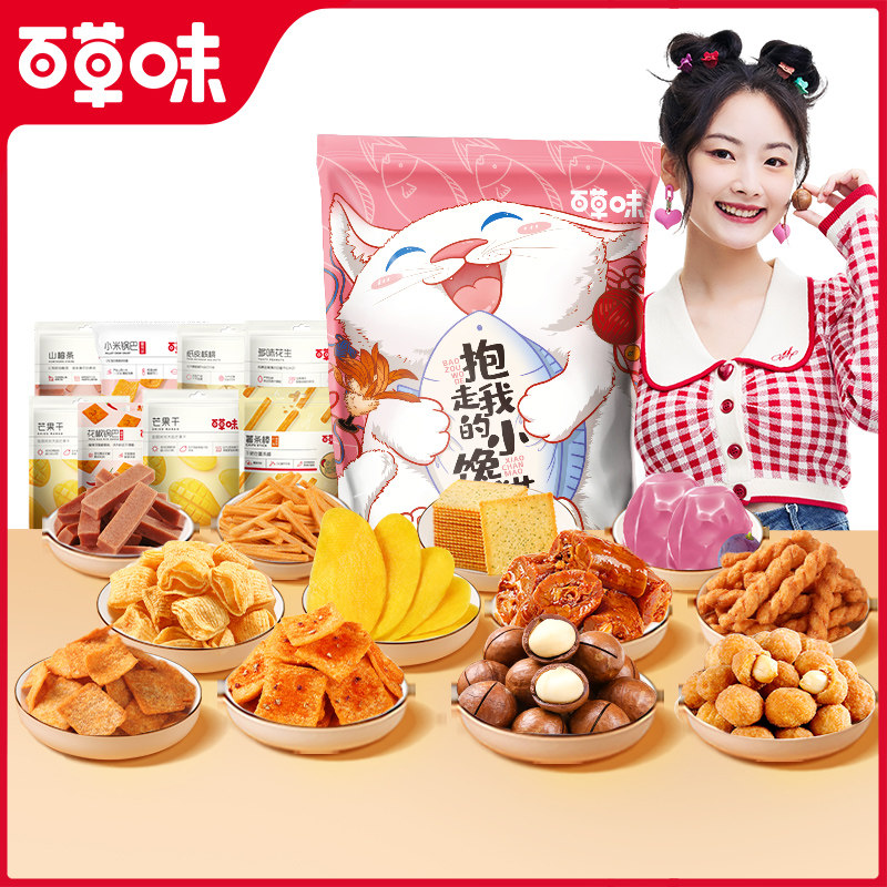 百草味抱抱巨型零食大礼包小馋猫七夕生日礼物猪饲料送女友送礼品