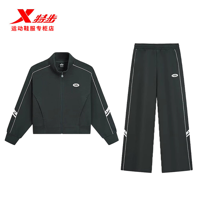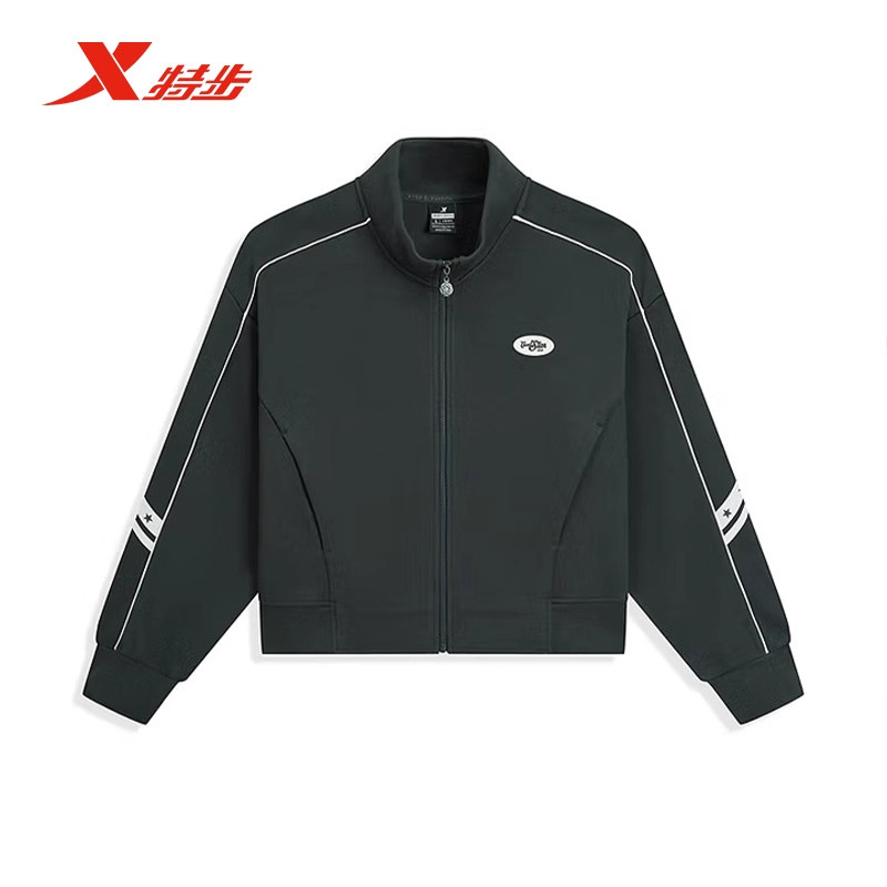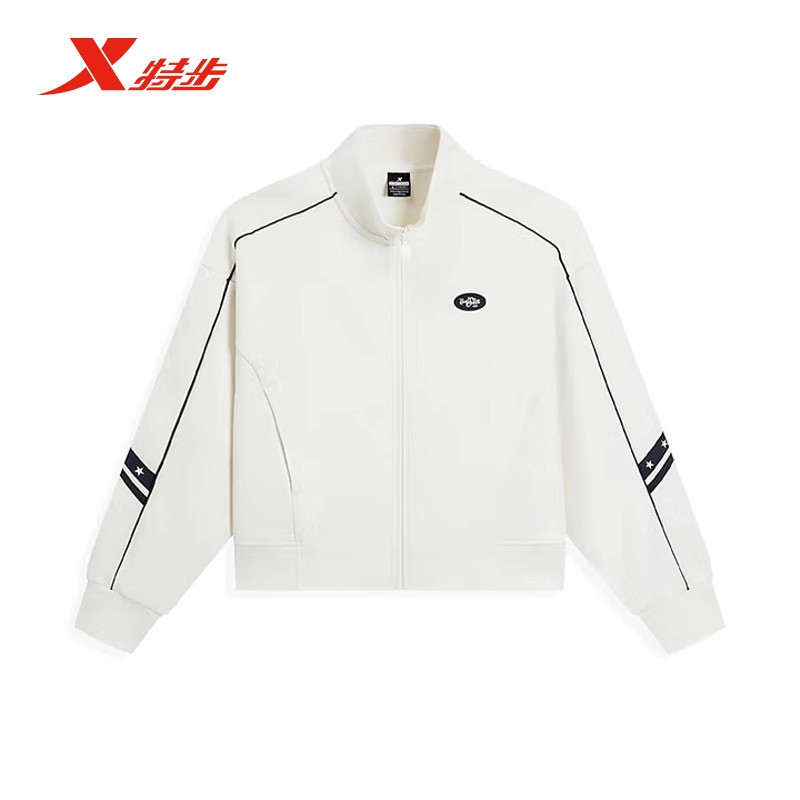 特步女款运动套装2026春季新款商场同款女装针织休闲立领开衫外套
