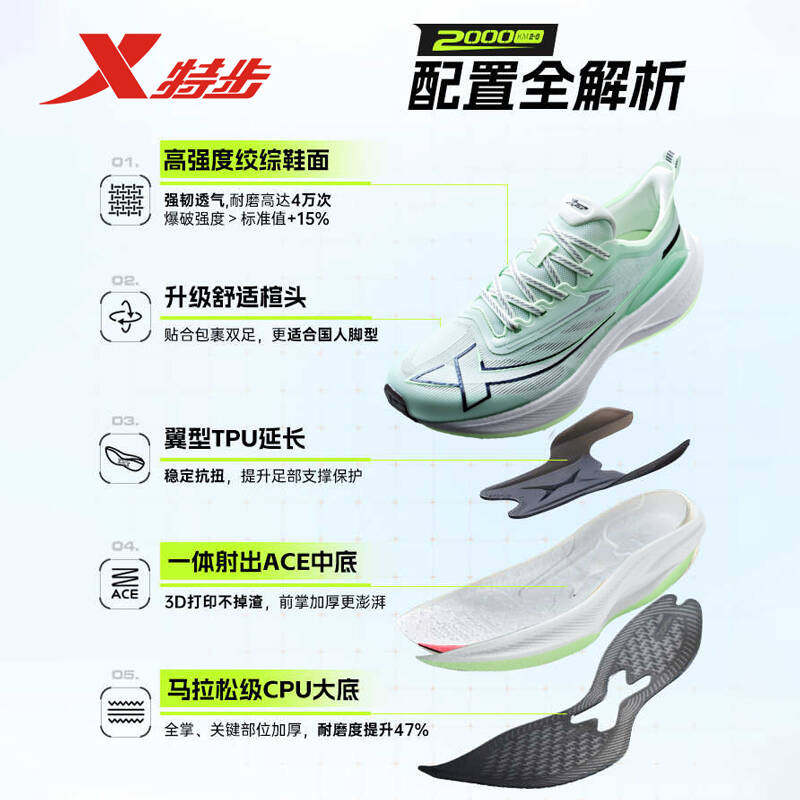 特步男鞋2000公里二代跑步鞋透气缓震马拉松两千公里竞速训练鞋