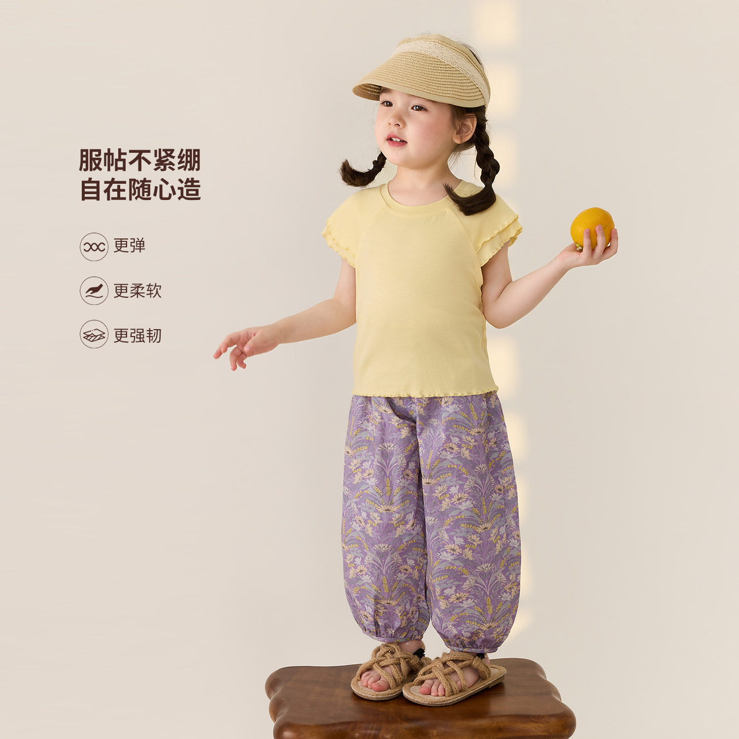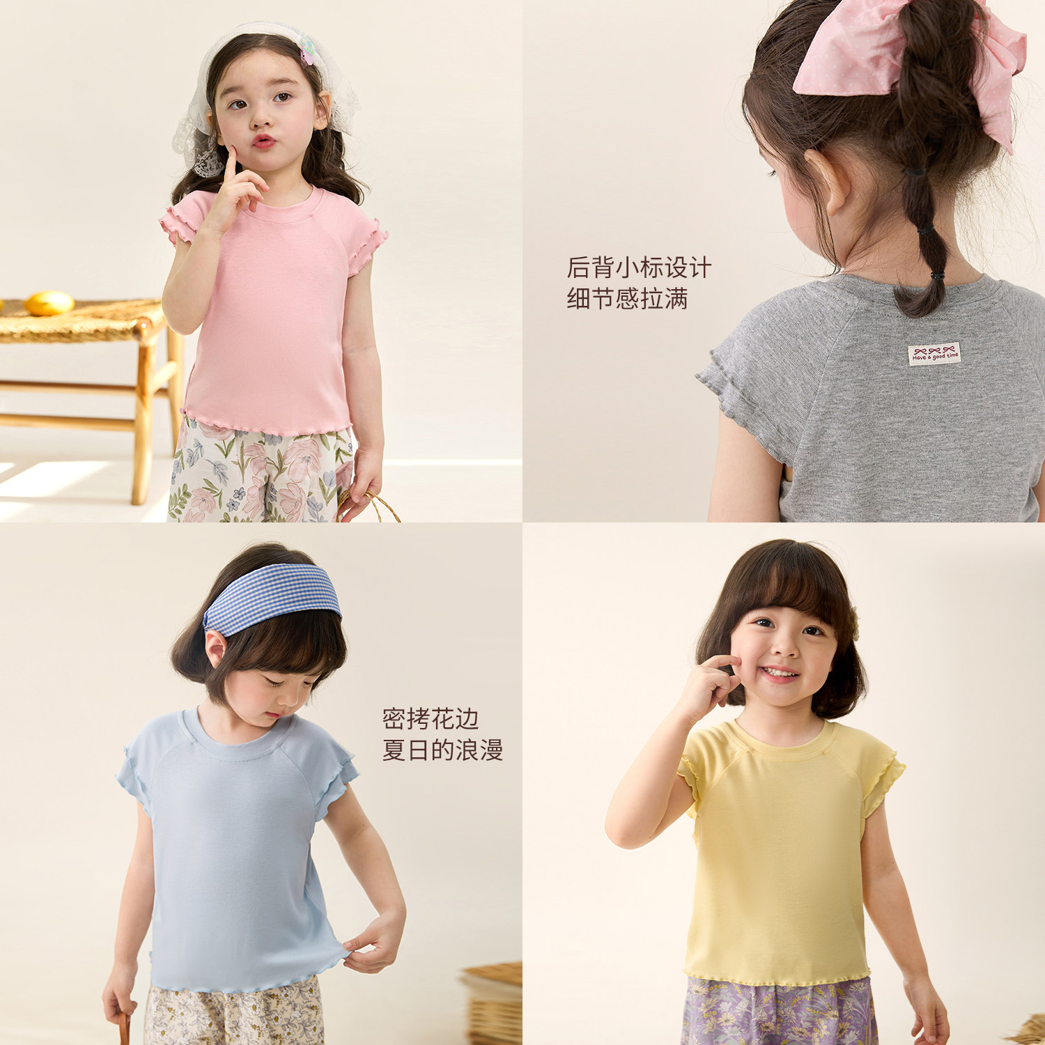 小O宝童装宝宝荷叶边短袖t恤女百搭2026夏新款女童木耳边薄款上衣