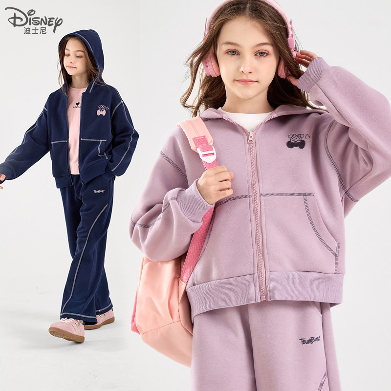迪士尼女童套装春秋季儿童运动服大童连帽外套裤子洋气两件套童装
