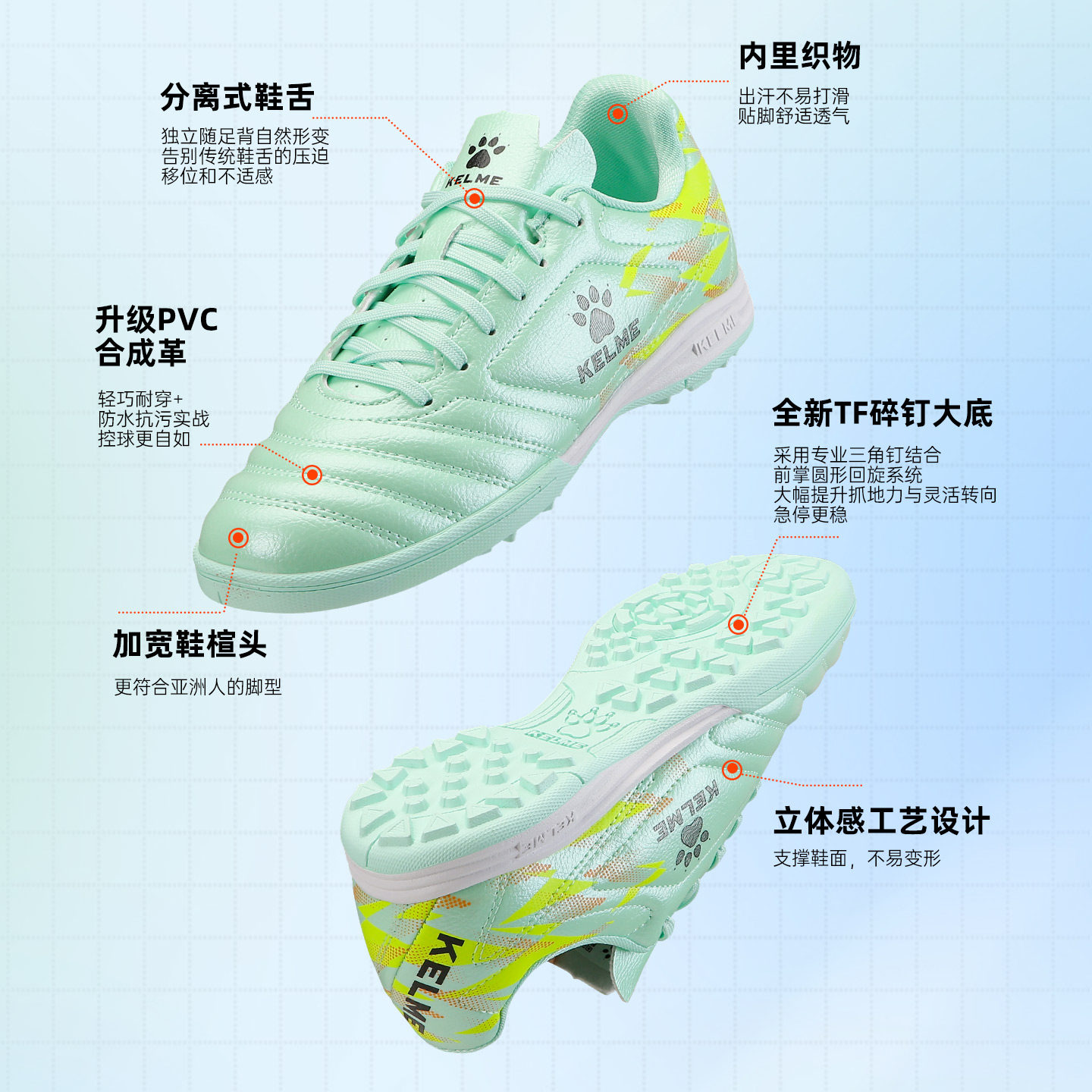 KELME卡尔美儿童足球鞋TF碎钉男童女童青少年防滑训练学生足球鞋