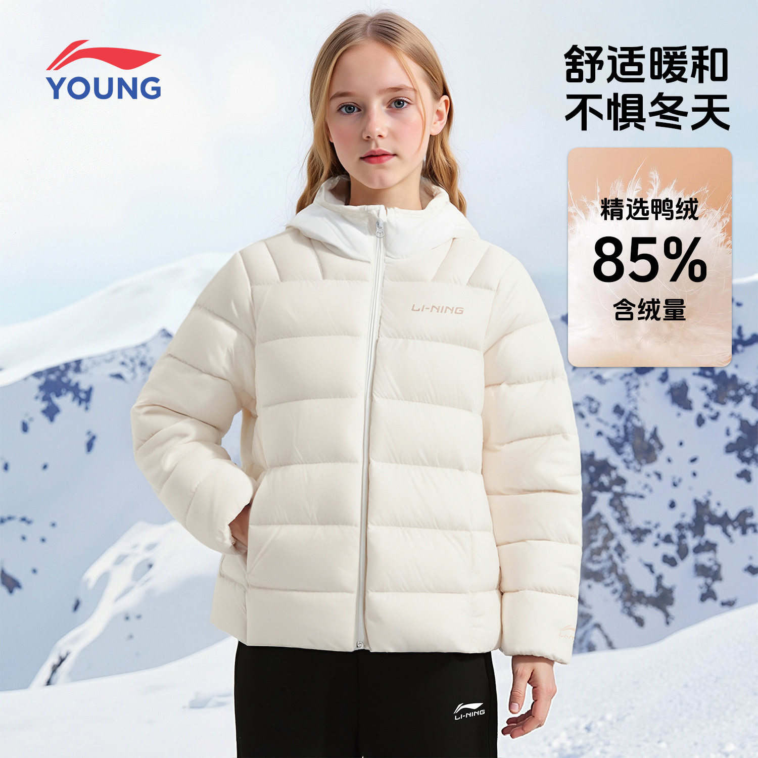 李宁儿童羽绒服男女童2026秋冬季青少年休闲宽松加厚保暖连帽外套