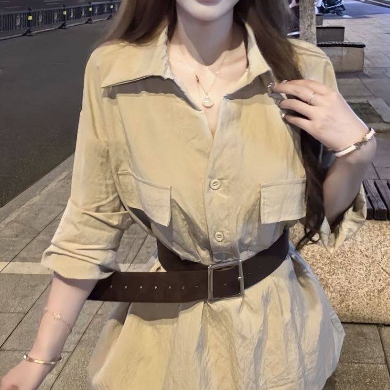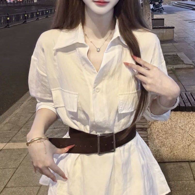韩系白色Polo领衬衫连衣裙女早秋纯欲小个子气质修身显瘦收腰短裙