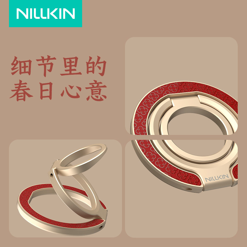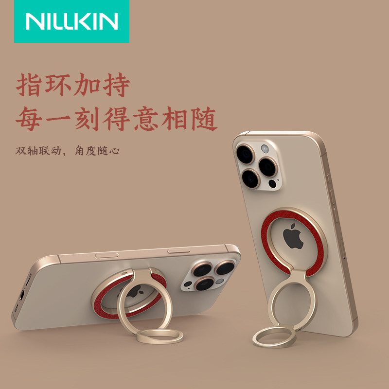 耐尔金马年定制款红色Magsafe磁吸手机指环扣支架便携可折叠超薄横竖屏可调节适用于苹果iphone安卓手机