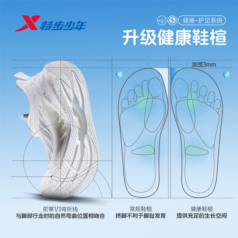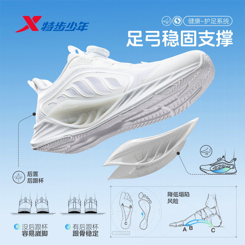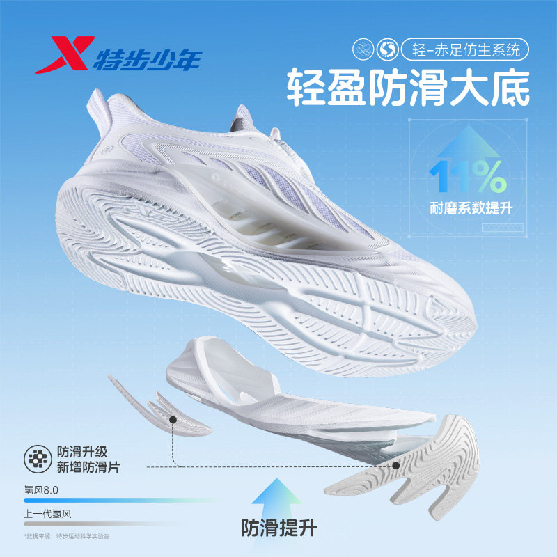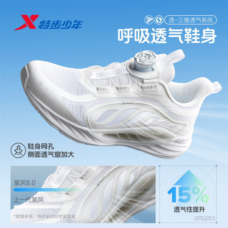 【氢风8.0护足跑鞋】特步童鞋男童运动鞋白色儿童跑步鞋男孩鞋子