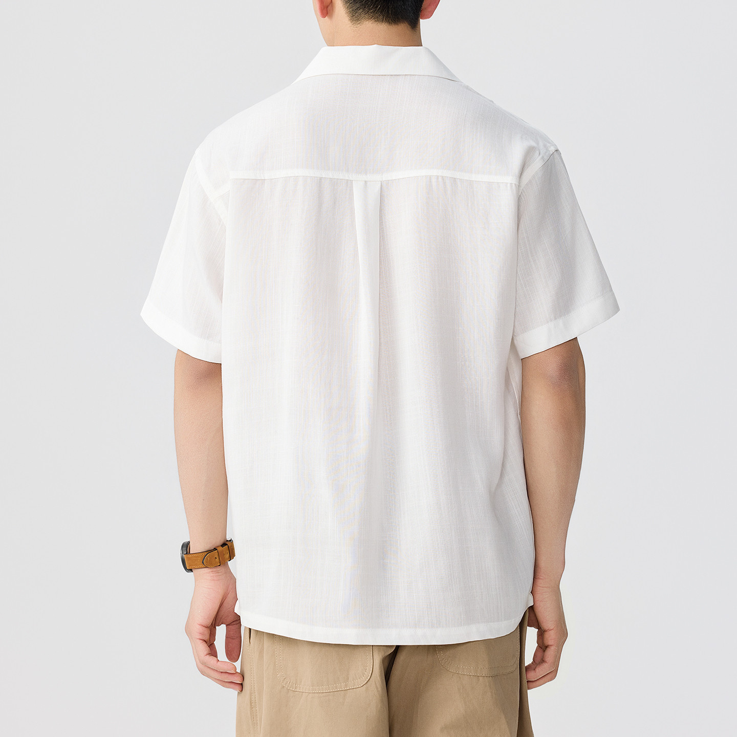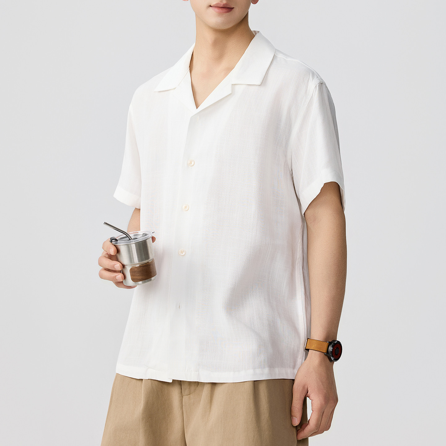 青少年古巴领短袖衬衫休闲天丝衬衣男款2026新款夏季亚麻混纺上衣