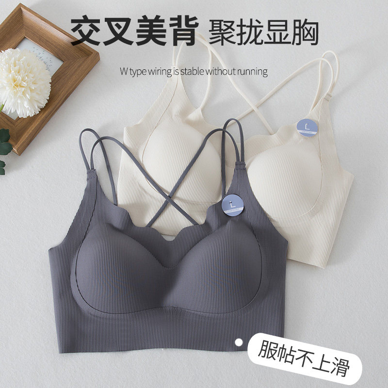 美背内衣女小胸加厚聚拢上托收副乳防下垂性感交叉运动无痕胸罩