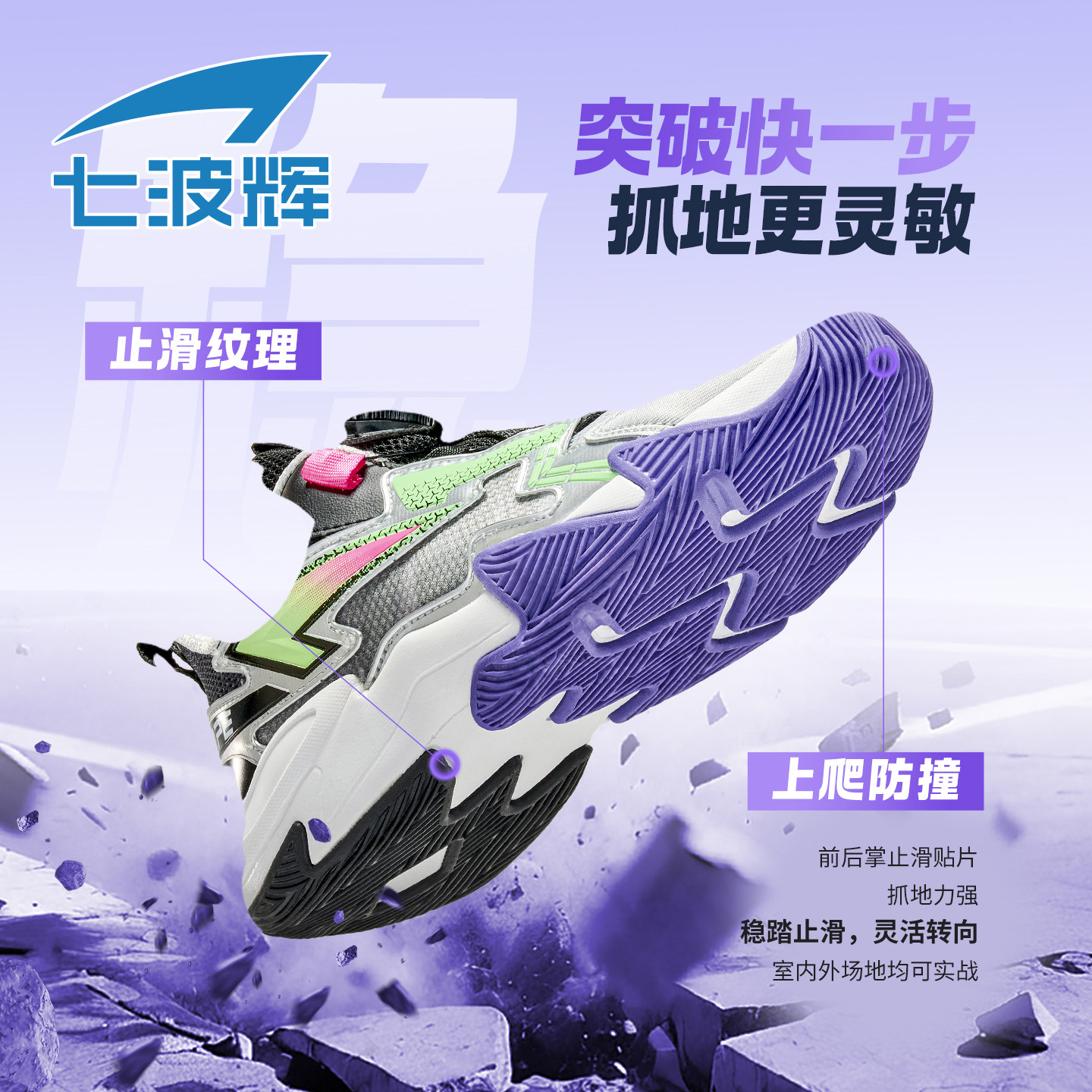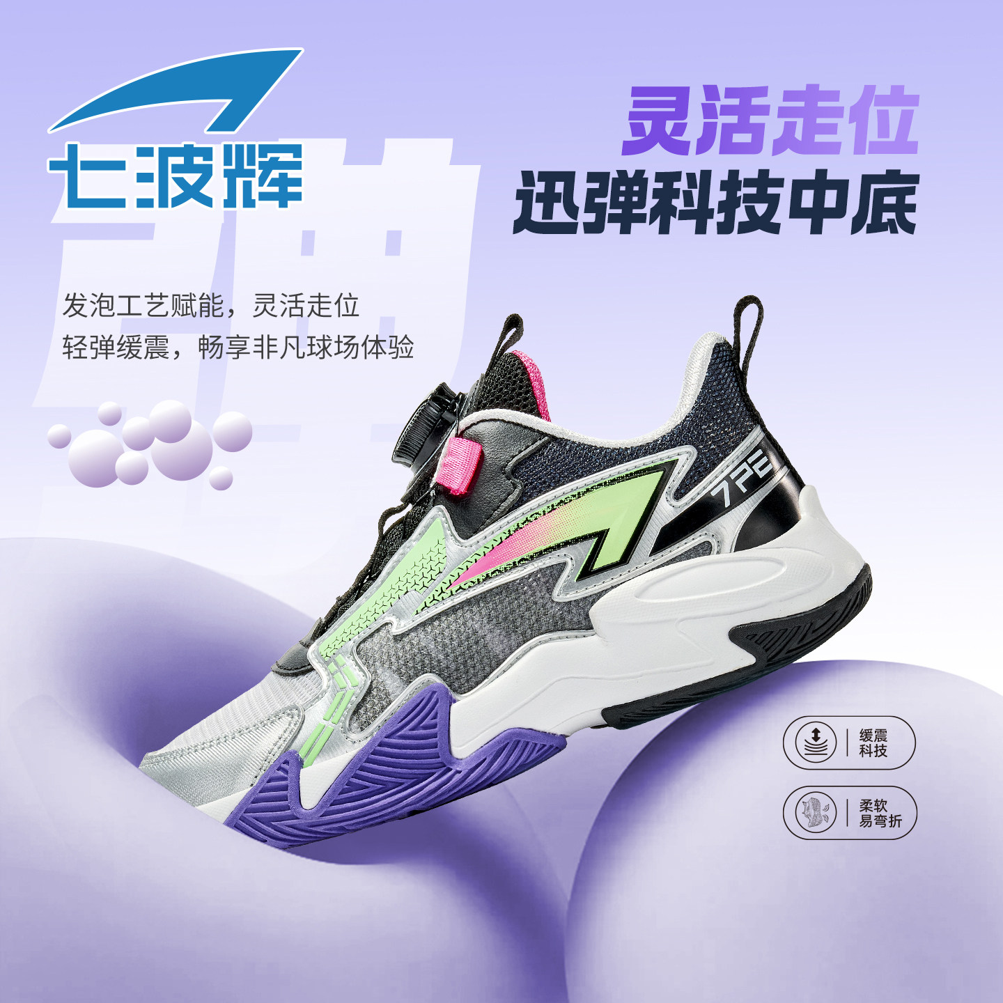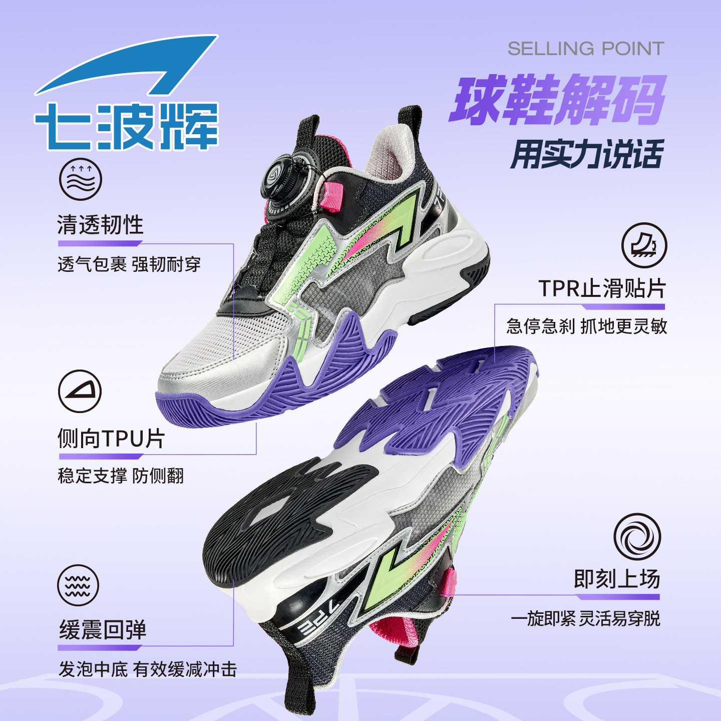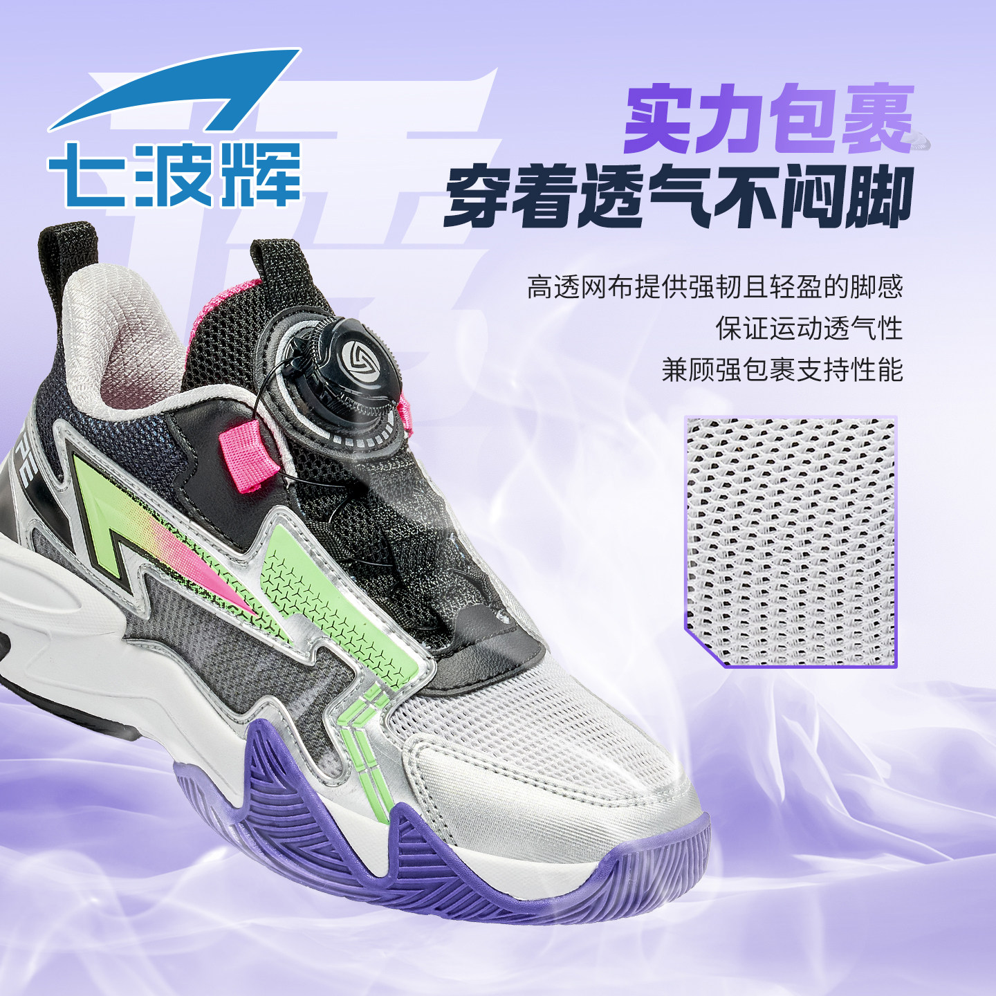 七波辉童鞋男童篮球鞋儿童透气单网2026春季新款青少年男孩运动鞋