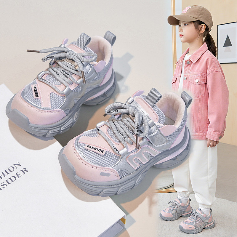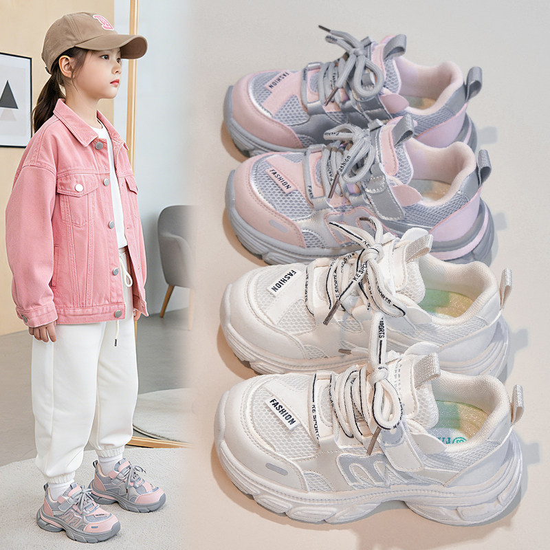 女童老爹鞋春秋季新款男童网面透气防滑儿童魔术贴运动鞋百搭童鞋