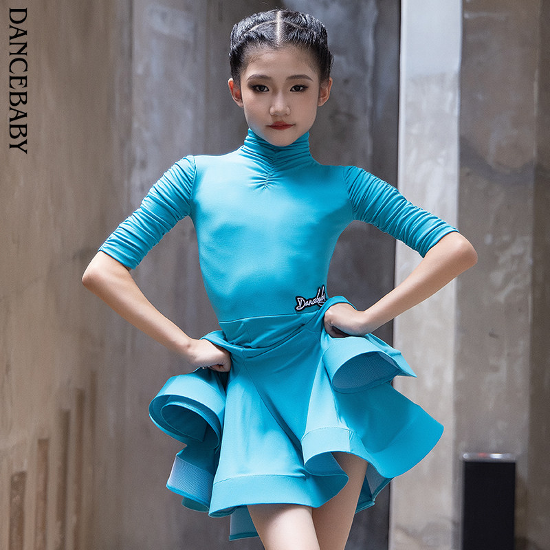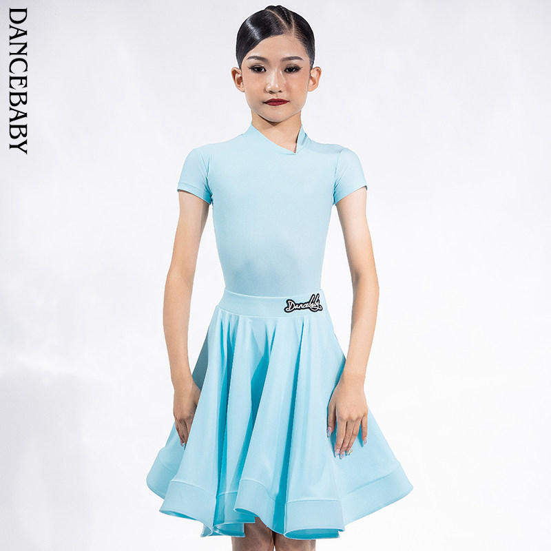 Dancebaby拉丁舞服少儿比赛考级服短袖规定服舞服分体两件套
