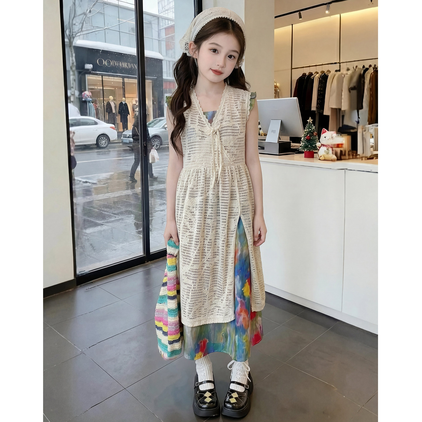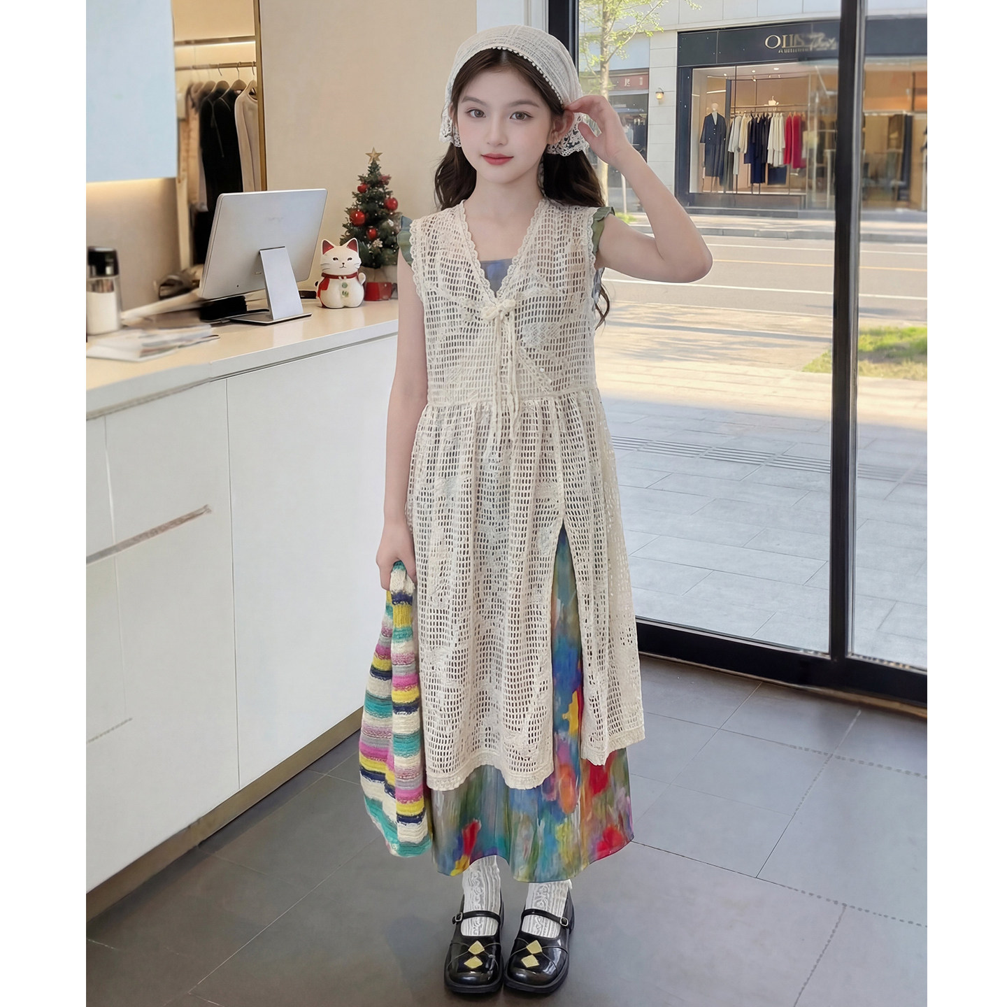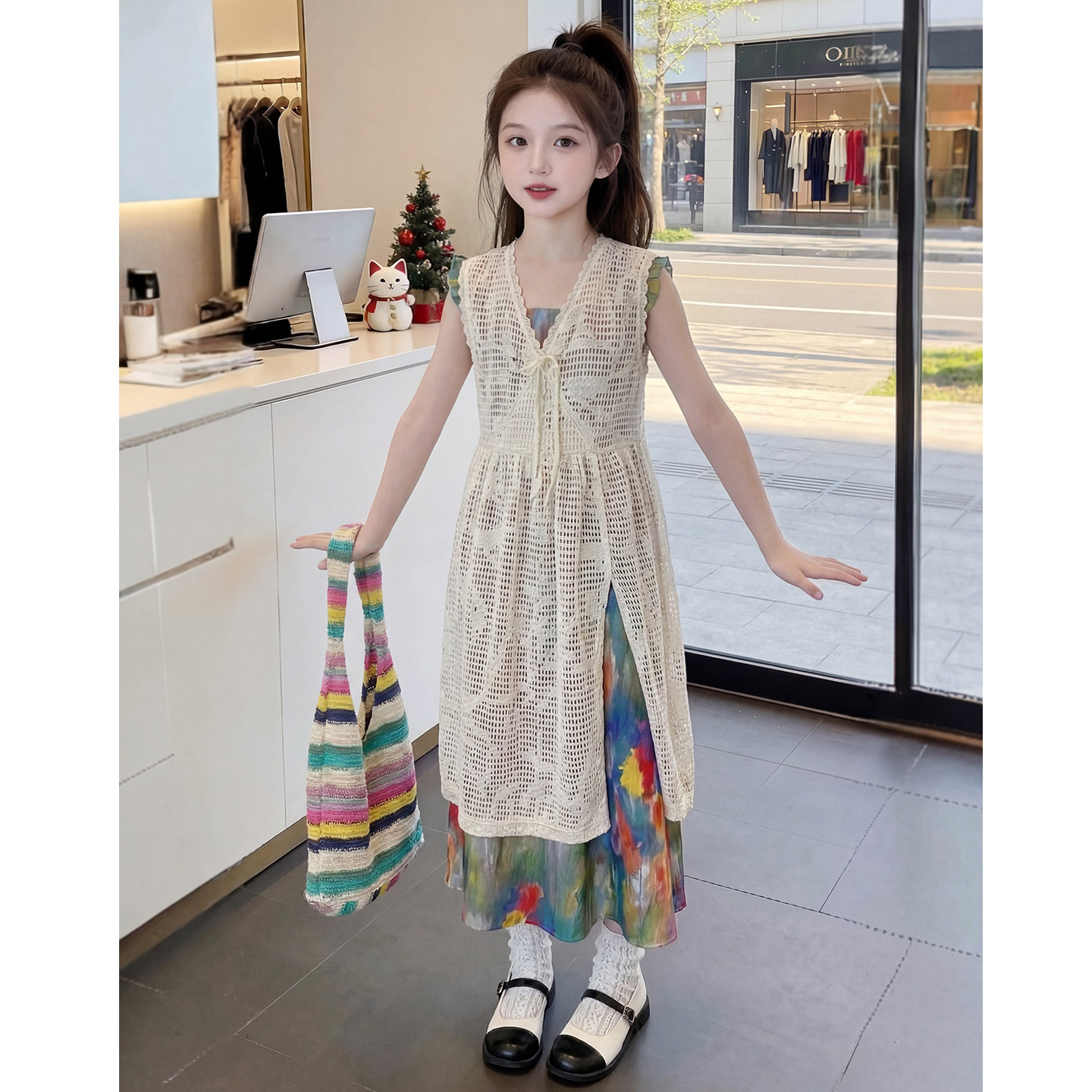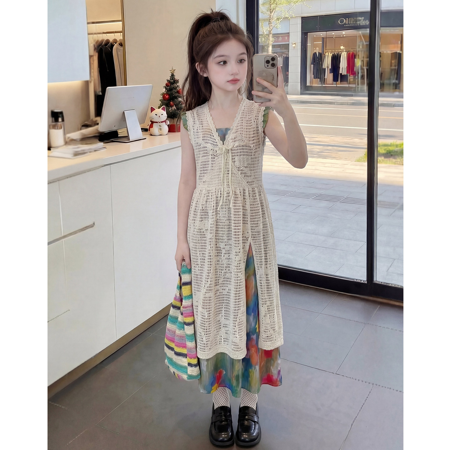 女童夏装套装2026新款儿童时髦韩版镂空开衫两件套女孩夏季衣服潮