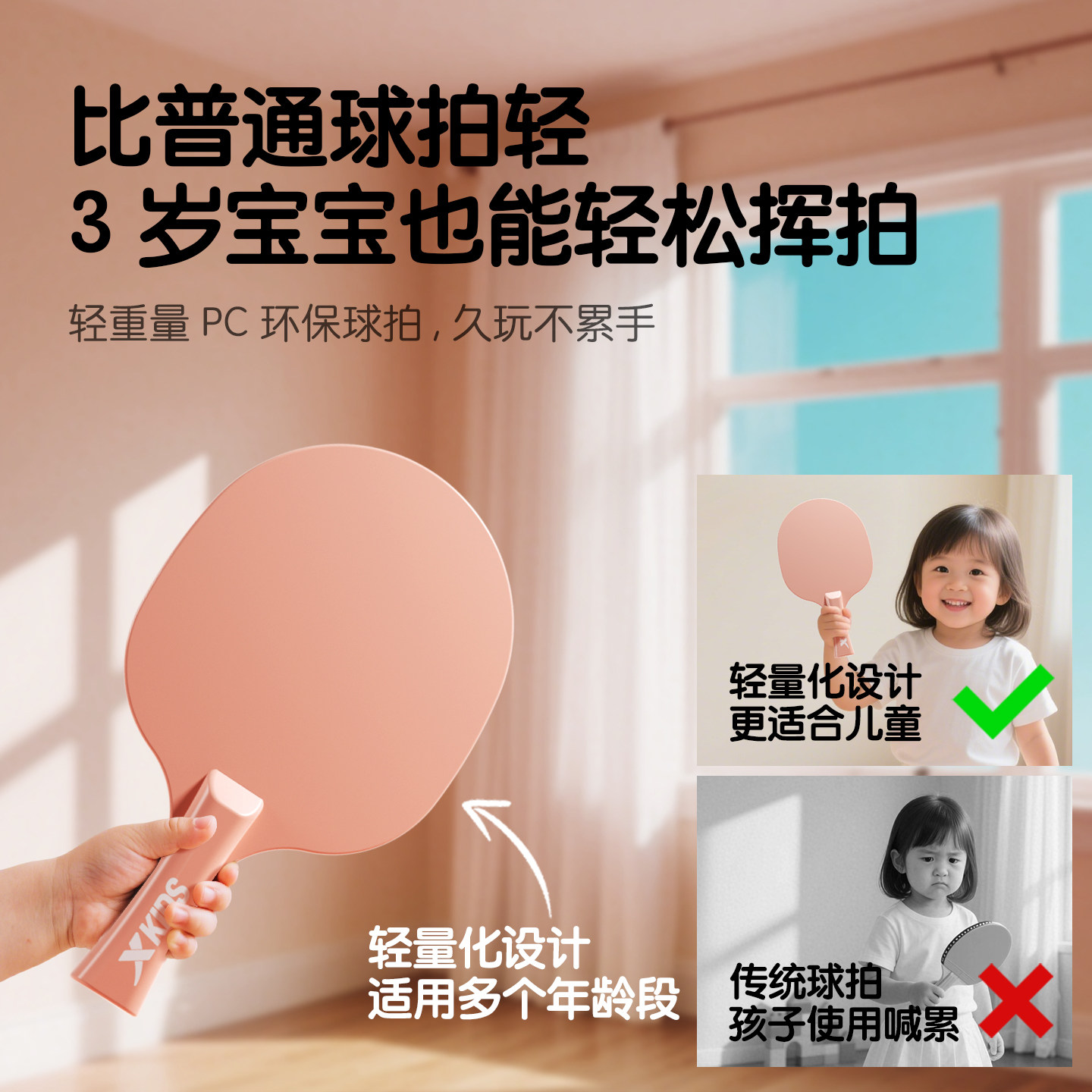 特步悬挂式乒乓球儿童训练器室内手眼协调锻炼亲子互动球拍类玩具