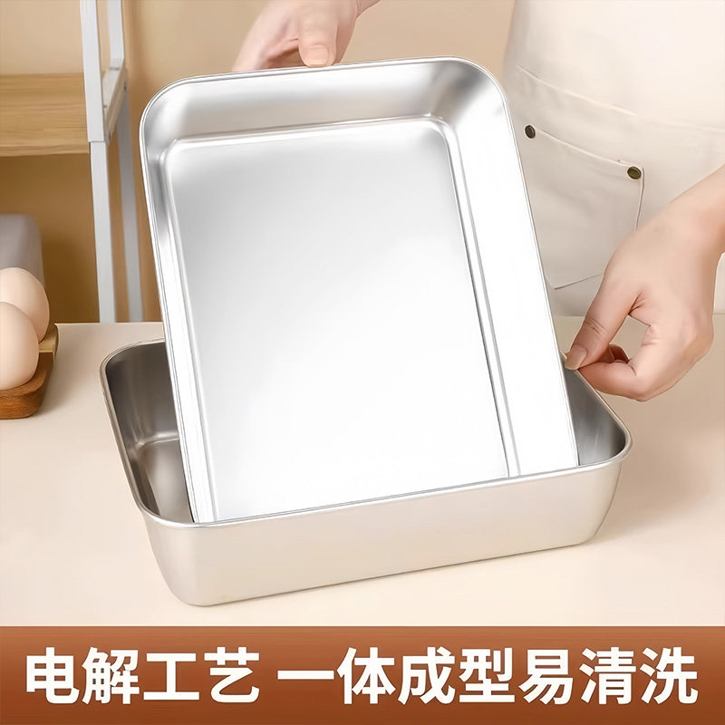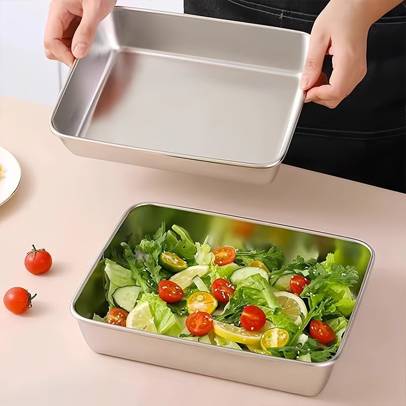 304不锈钢保鲜盒方盘冰箱收纳盒带盖子烧烤凉菜盘果盘蒸鱼烤鱼盘