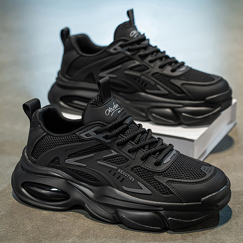 男鞋2026新款夏季透气防臭网面运动厚底青少年增高休闲黑色老爹鞋