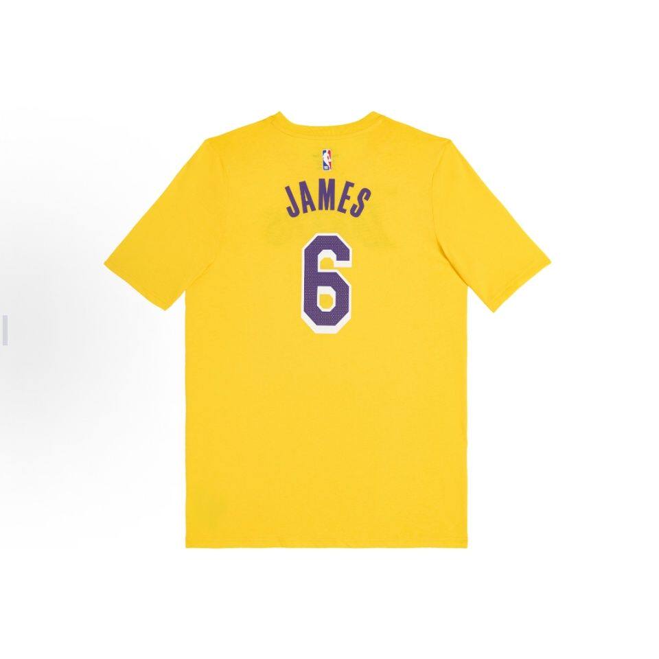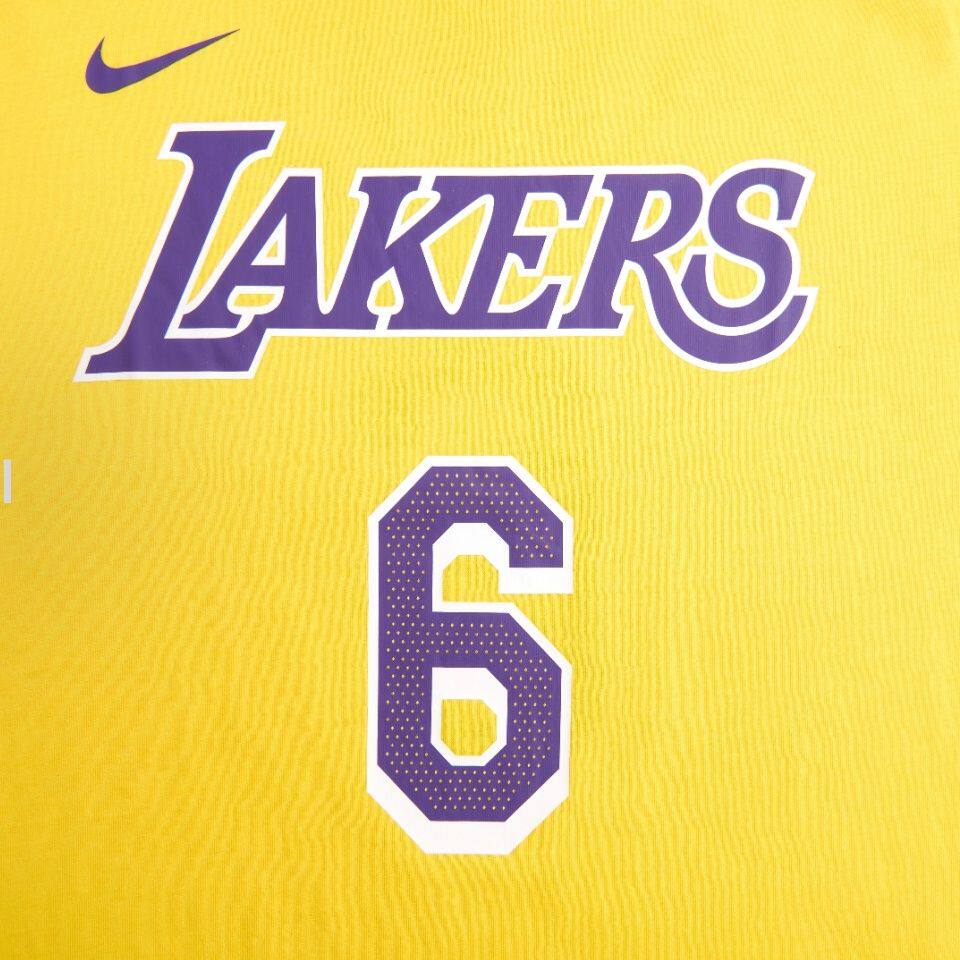 Nike耐克大童 NBA湖人勒布朗詹姆斯6号金色舒适轻盈透气圆领短袖