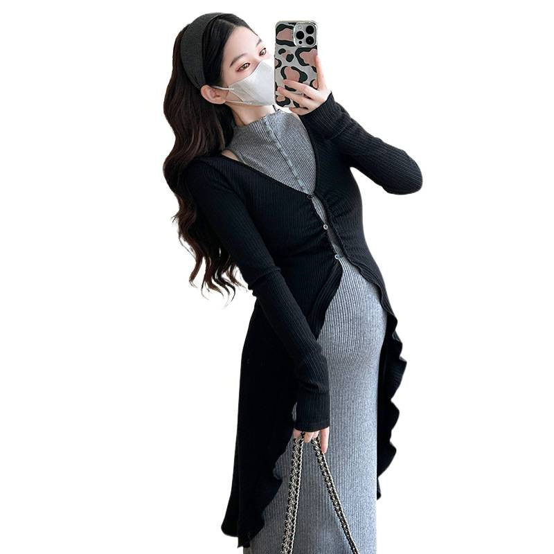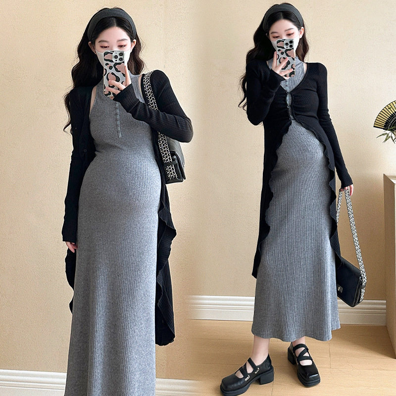 孕妇秋东高级感新中式赫本风2件套开衫连衣裙套装