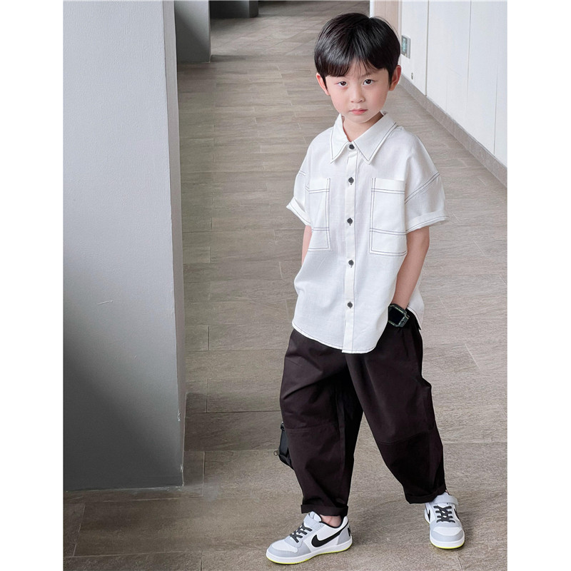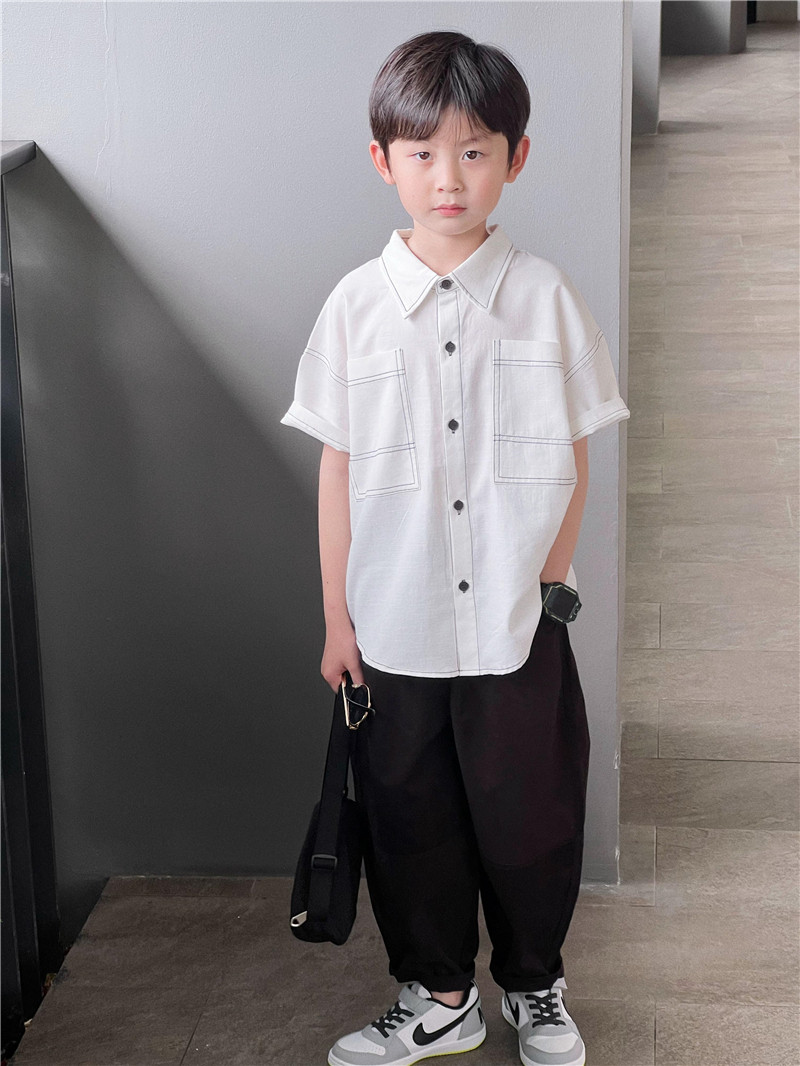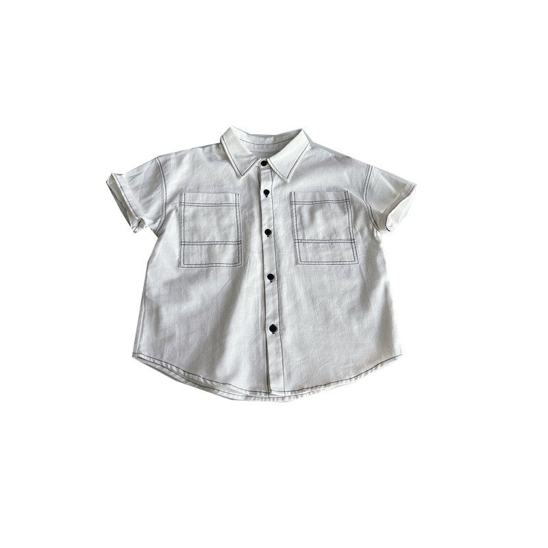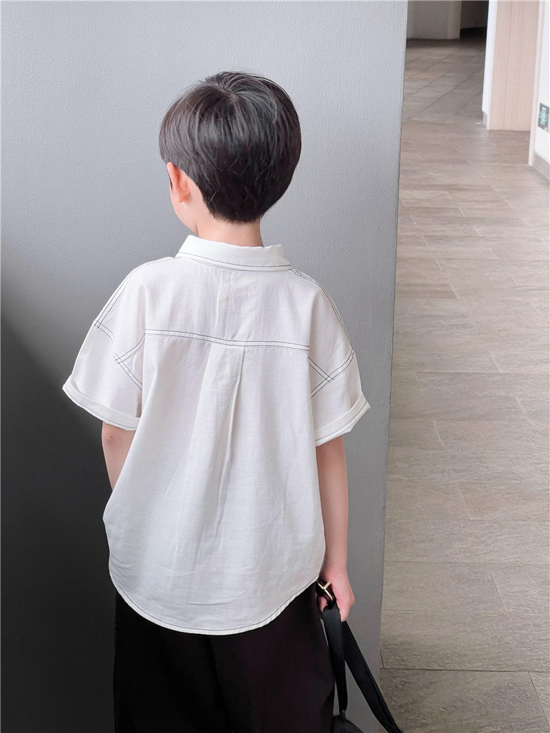 童童妈定制男童日系宽松白色明线短袖衬衣小学生纯棉软糯衬衫夏装