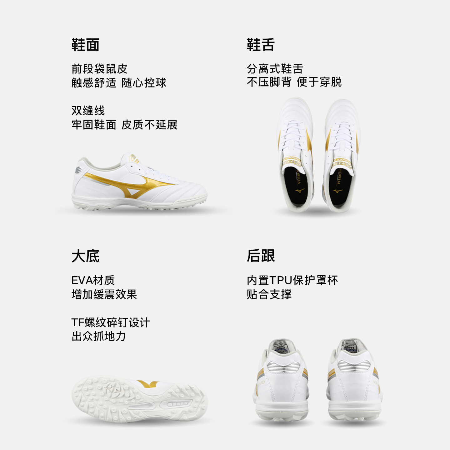 小李子Mizuno美津浓莫雷拉Morelia 2次高端AS碎钉袋鼠皮足球鞋男