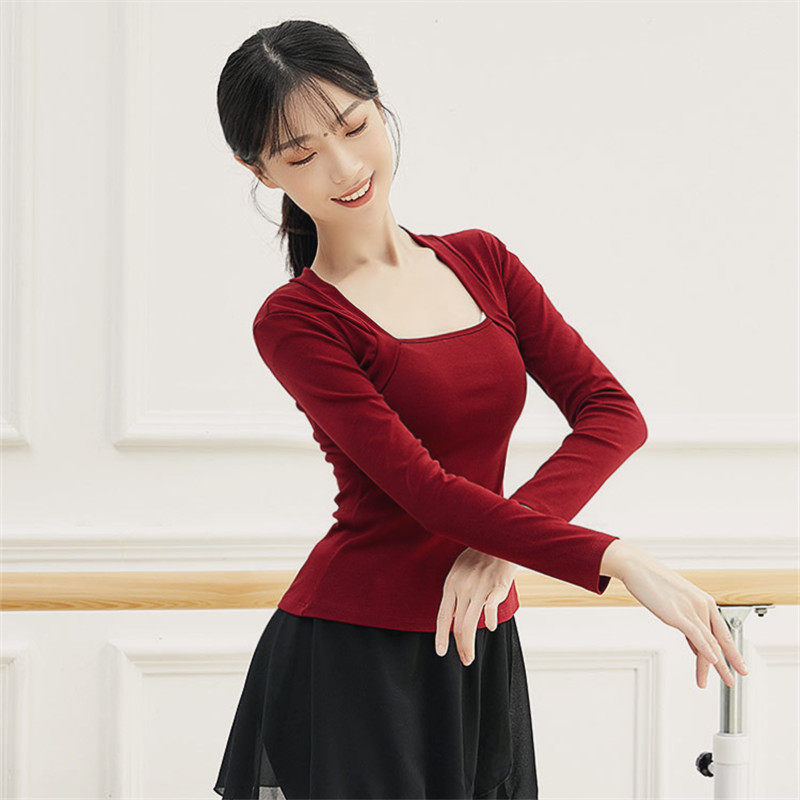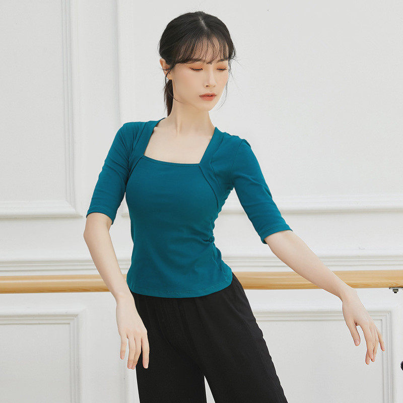 纯棉方领芭蕾形体服现代舞服中国舞古典舞蹈服装成人练功服上衣女