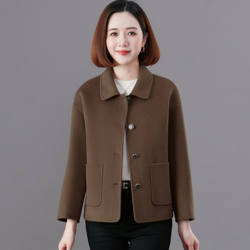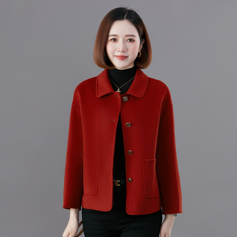 秋冬新款中年妈妈双面羊绒大衣女短款大码洋气小个子羊毛呢子外套