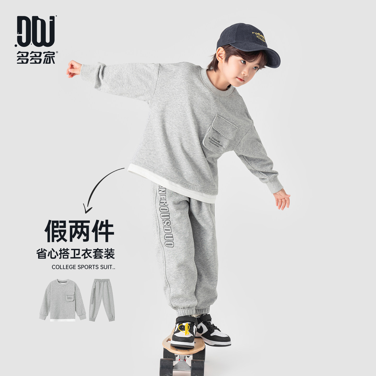 多多家男童运动套装假两件春装2026新款春秋季儿童中大童卫衣卫裤