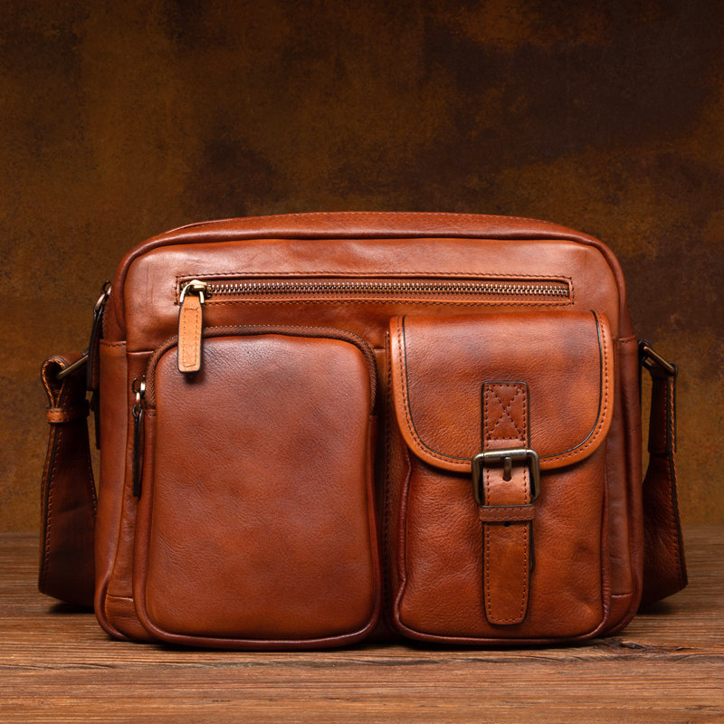 原创手工擦色植鞣皮男包头层牛皮斜挎包男士休闲复古大容量单肩包