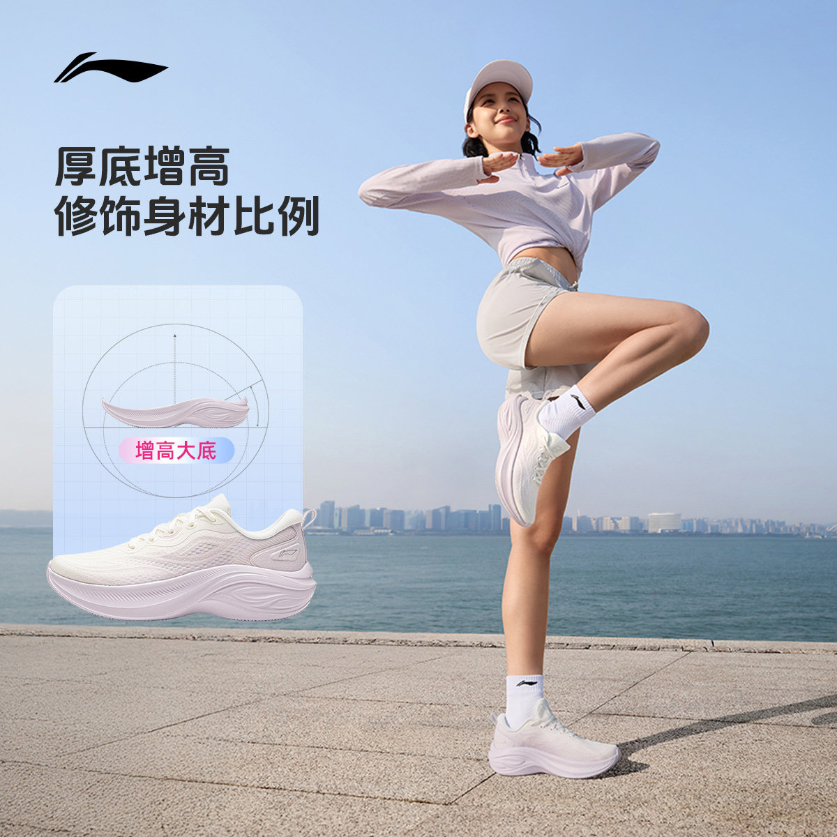 李宁凌波V3丨跑步鞋女款轻便软底2026春季新款休闲厚底减震运动鞋
