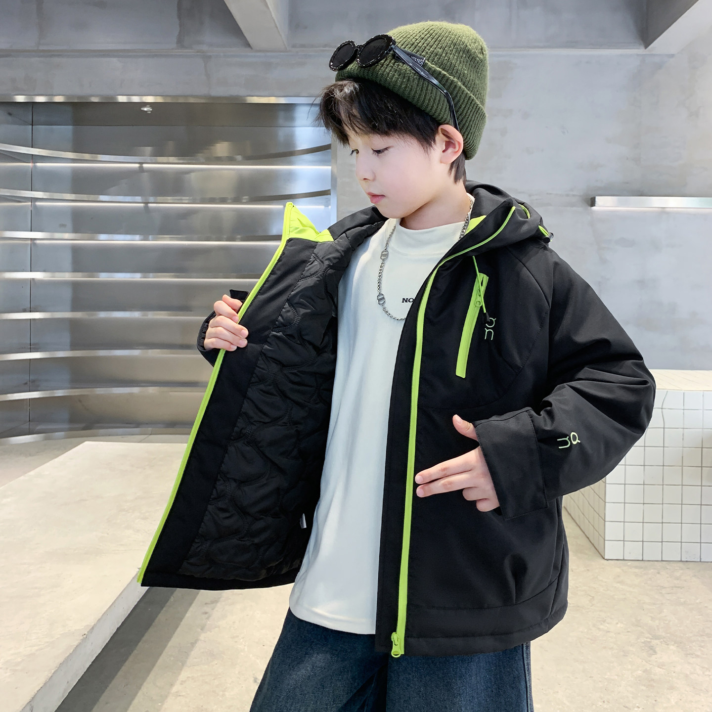 男童秋冬季夹棉外套2025新款中大童男孩酷帅加厚棉衣派克服风衣潮