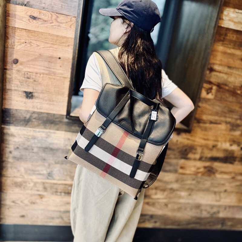 时尚大容量真皮双肩包2025年新款旅行轻便牛皮格子背包15寸电脑包