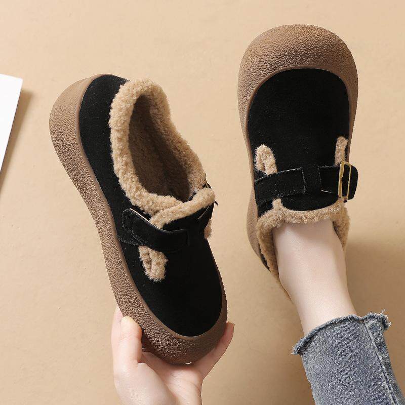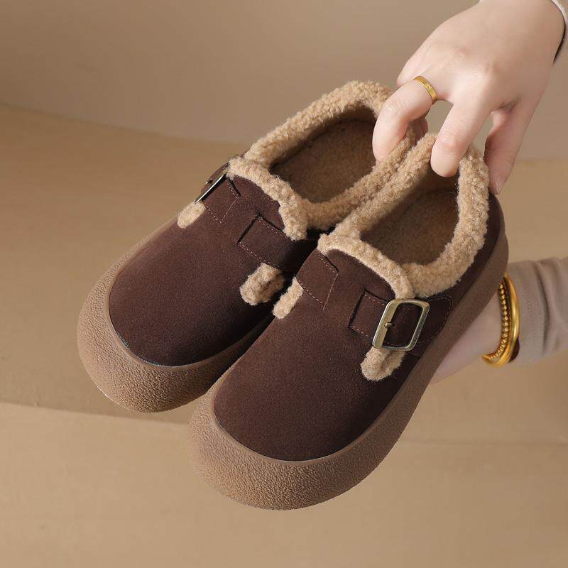 加绒女鞋真皮勃肯鞋女2026新款冬季雪地靴厚底大头皮鞋一脚蹬棉鞋