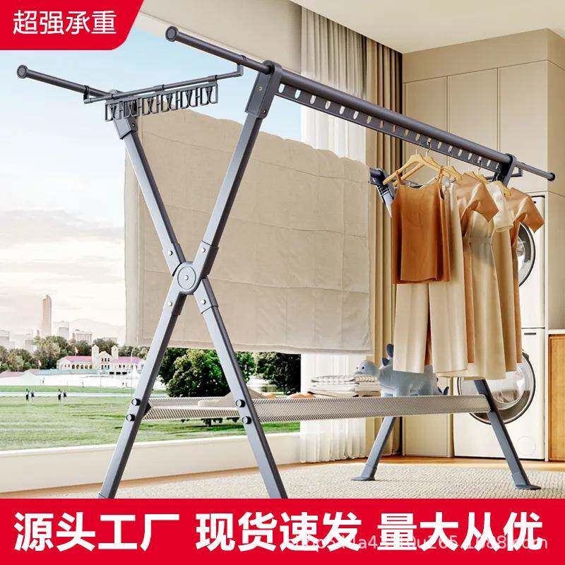 内阳台家用折室叠落地式晾衣架固防风加大承883晒衣晒重被工加厂