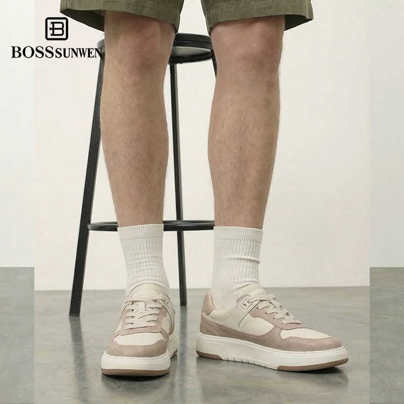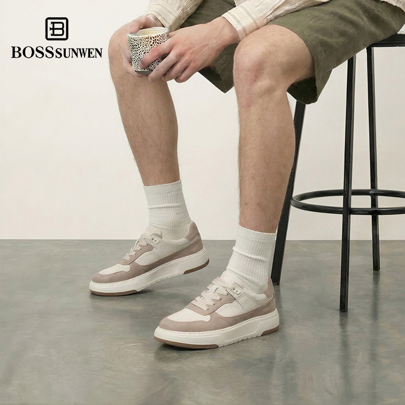 【许嵩同款】BOSSSUNWEN/博斯·绅威内增高厚底板鞋男休闲小白鞋