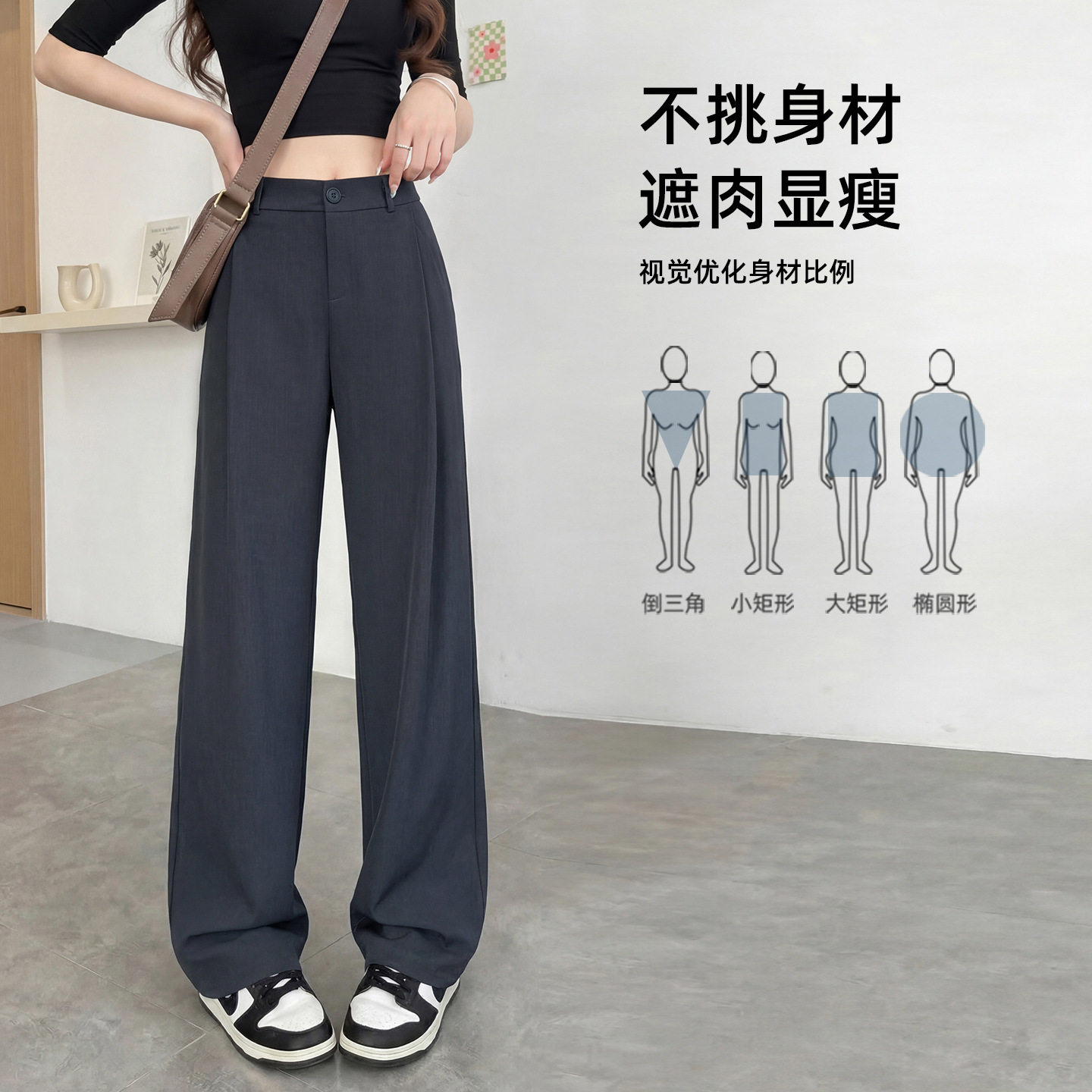 西装裤女夏季薄款2026新款灰色高级感垂感西裤直筒休闲窄版阔腿裤