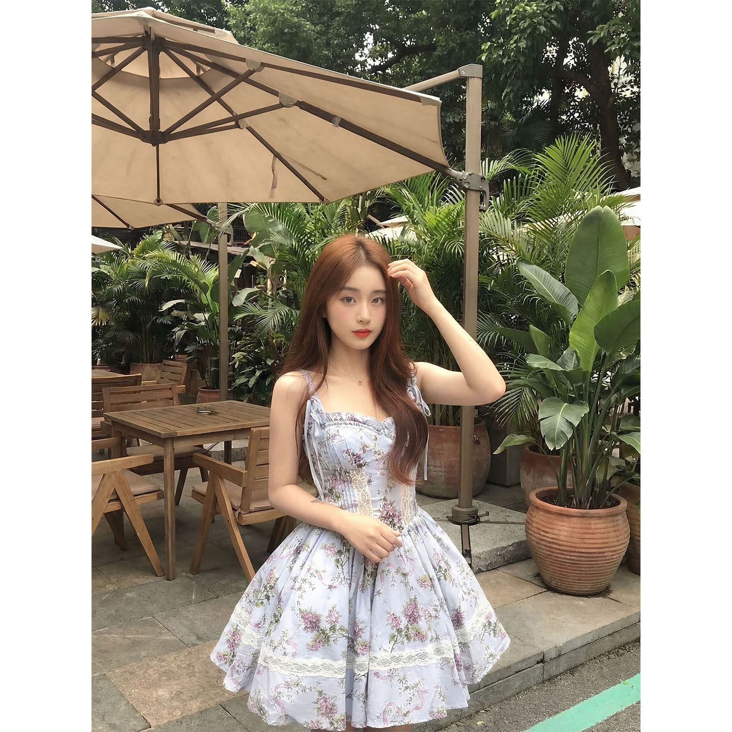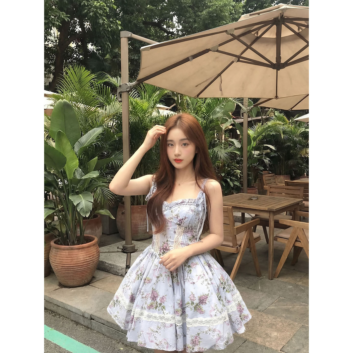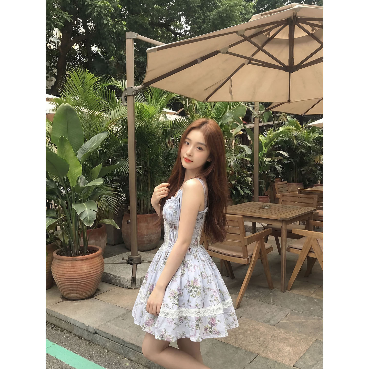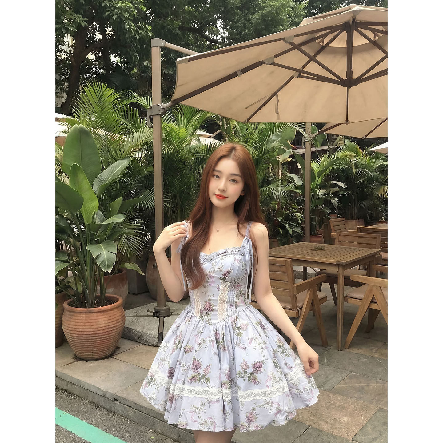 言可可 无袖吊带碎花连衣裙女小个子海边度假初夏独特漂亮小裙子