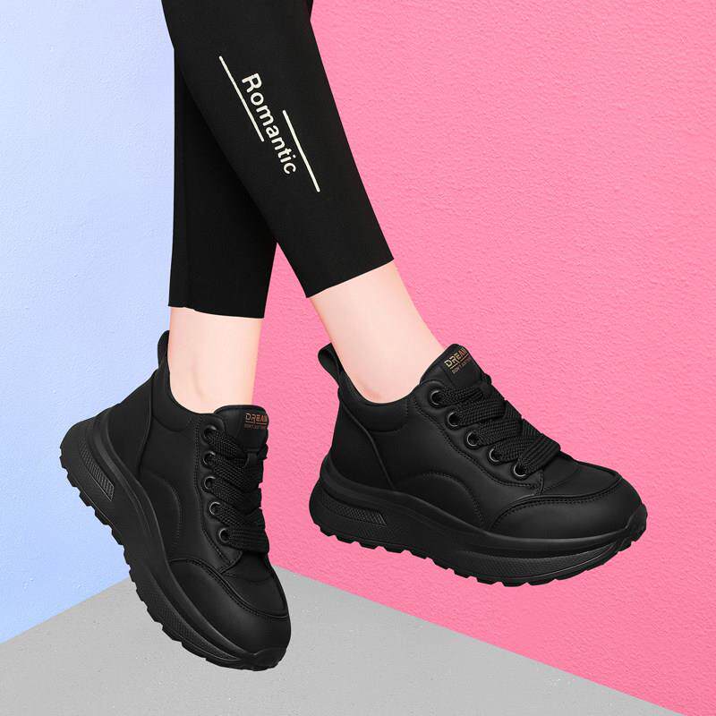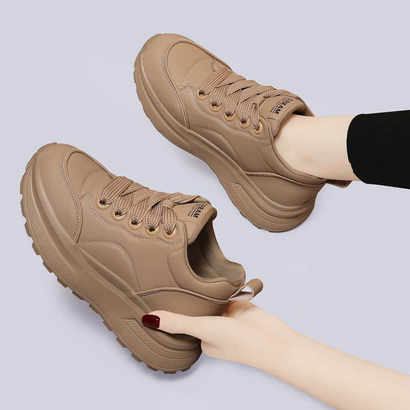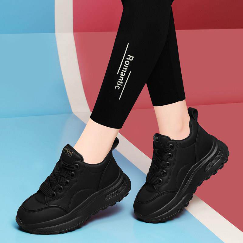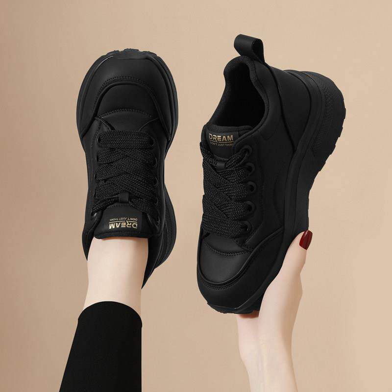 黑色厚底面包鞋女款2026秋季新款显脚小老爹鞋真皮休闲运动旅游鞋