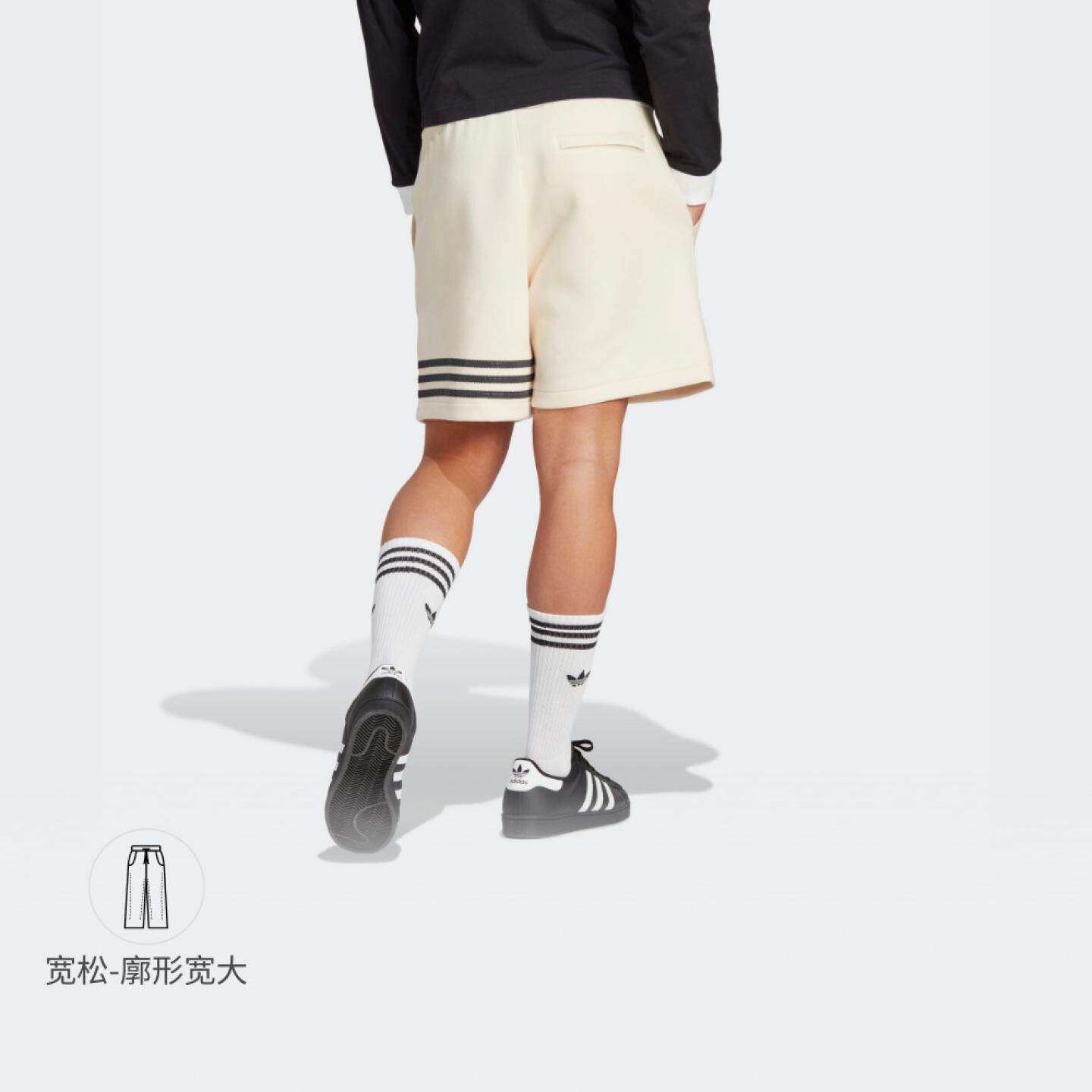 阿迪达斯三叶草男款裤子2024夏季三杠运动宽松短裤IR9430 IX0347