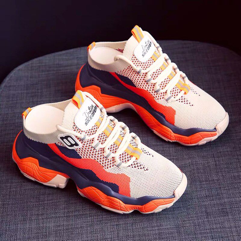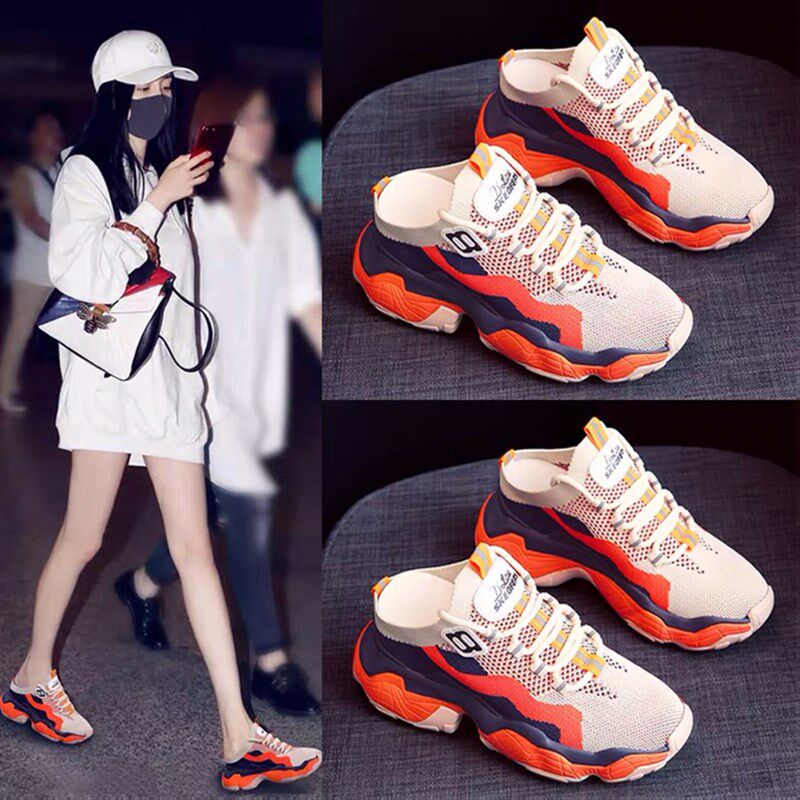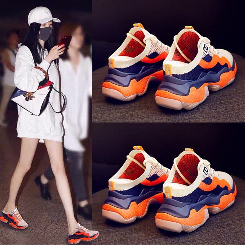 新款春夏女鞋增高网面凉鞋透气内增高半拖鞋女网红鞋凉拖鞋老爹鞋