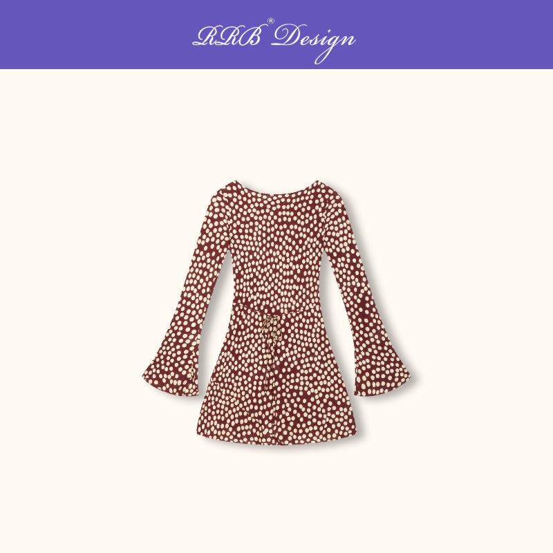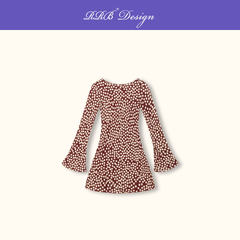 RRB Design 长袖圆领喇叭袖中长款桑蚕丝裙修身显瘦波点连衣裙