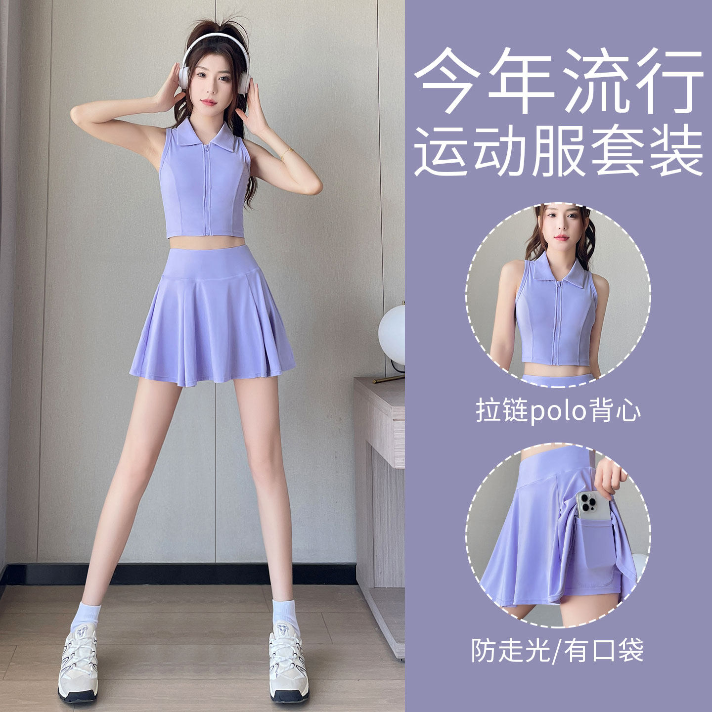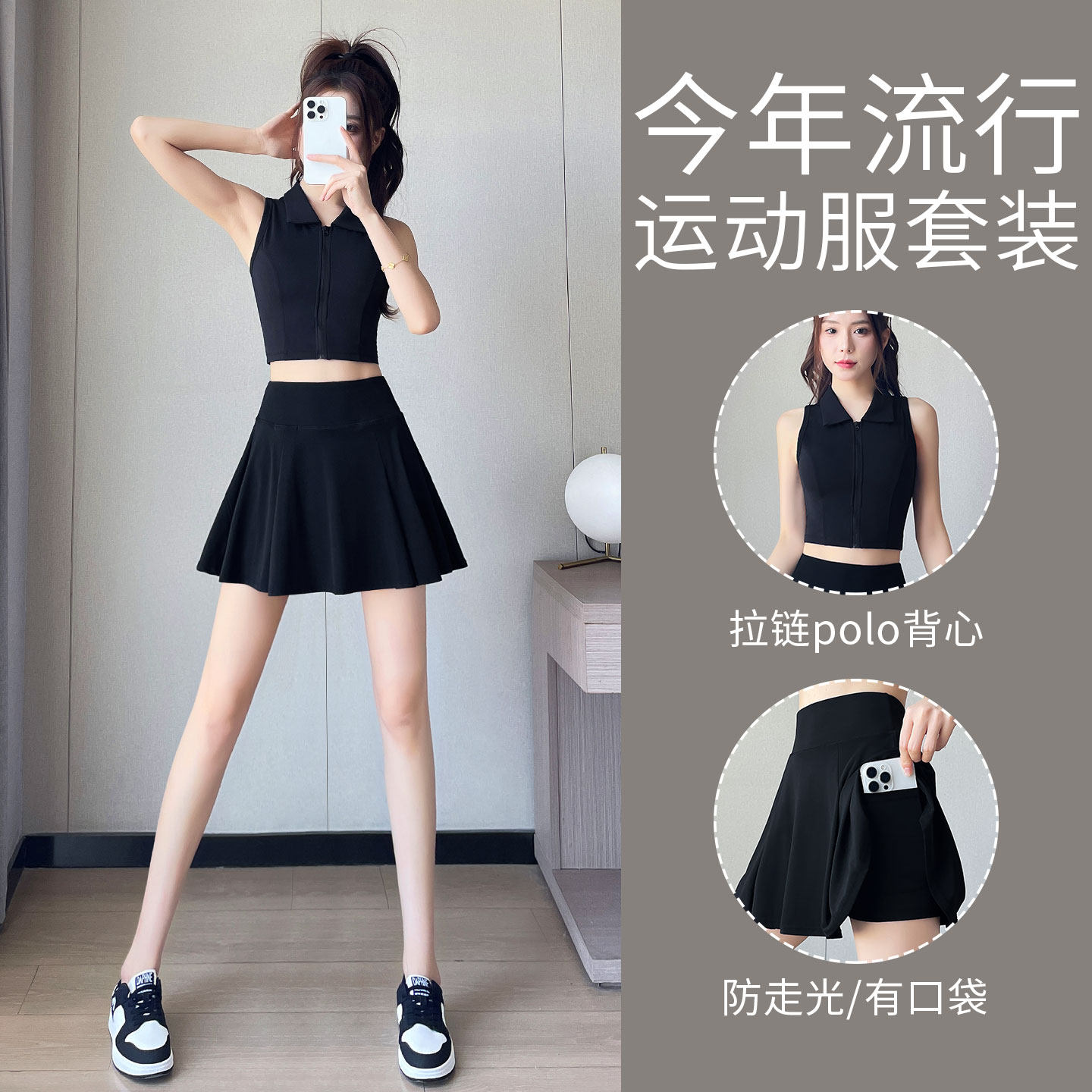 跑步运动套装女2026新款羽毛球服网球短裙速干健身衣瑜伽背心时尚