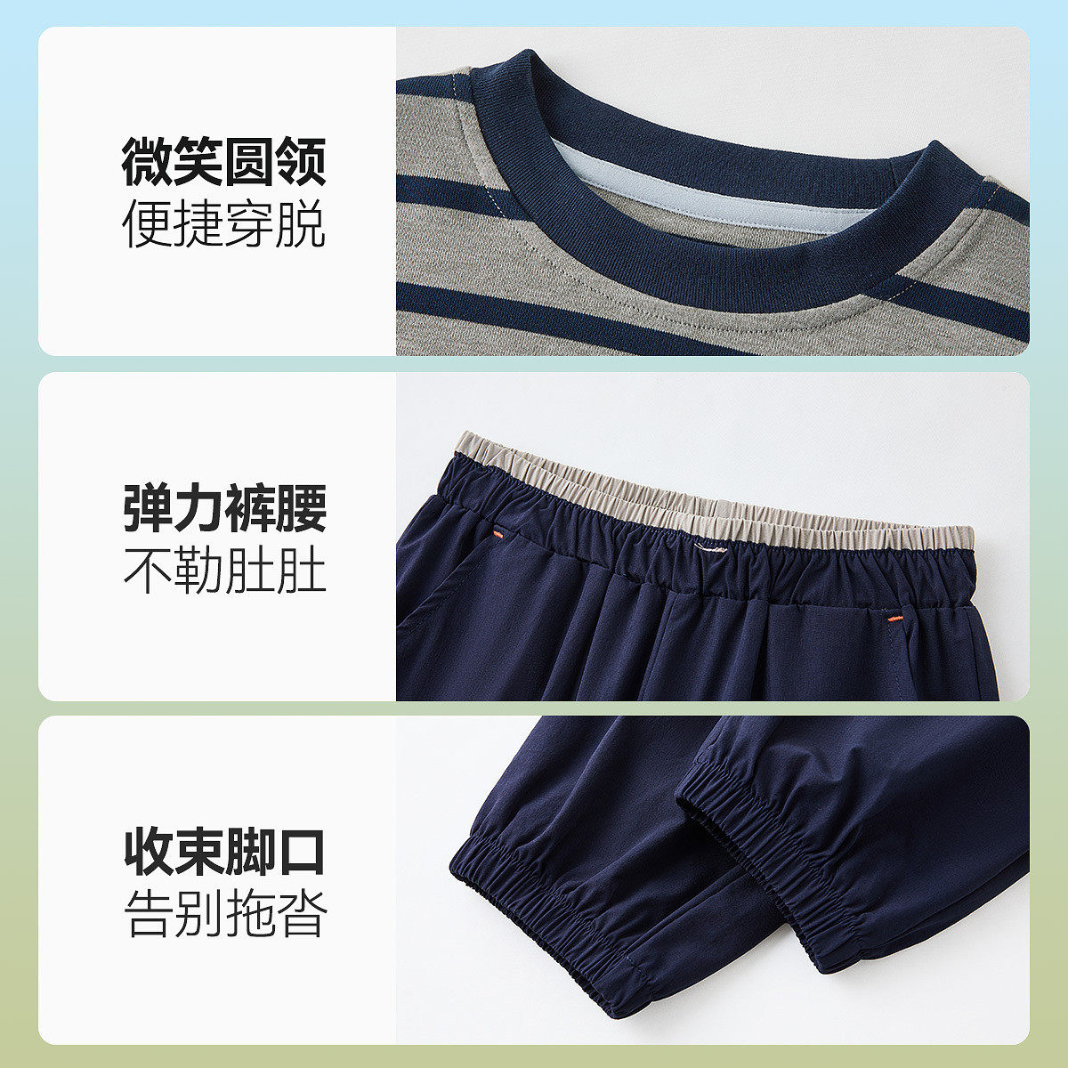 ask儿童套装2026春季新款男女童圆领条纹T恤中大童束脚裤子两件装