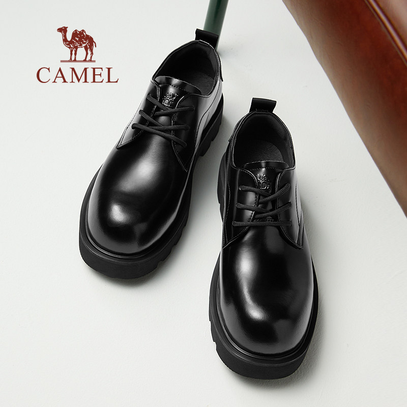 骆驼男鞋2026春季真皮圆头德比结婚新郎大头皮鞋厚底增高休闲英伦